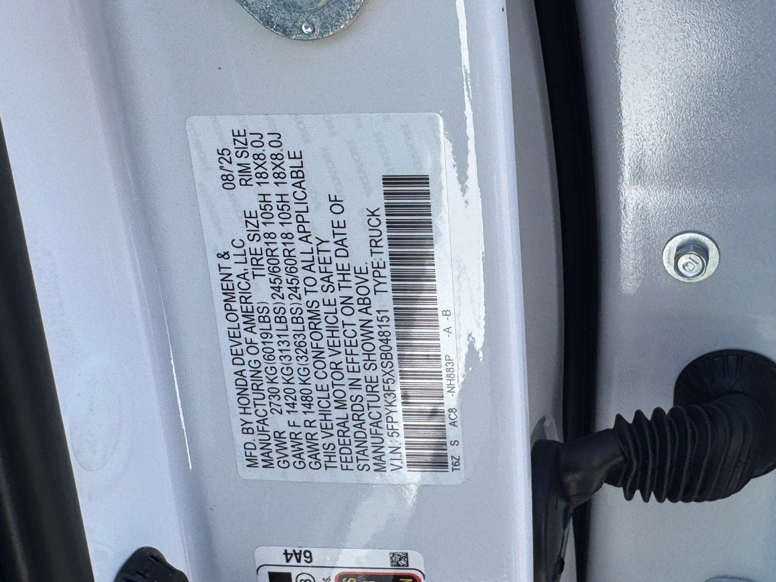 - VIN : 5FPYK3F5XSB048151