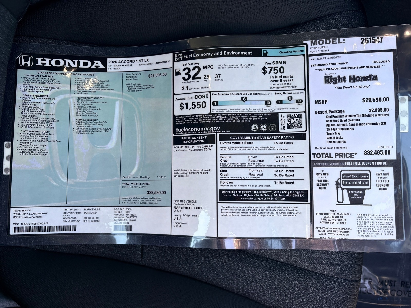 2026 Honda Accord LX at Right Honda