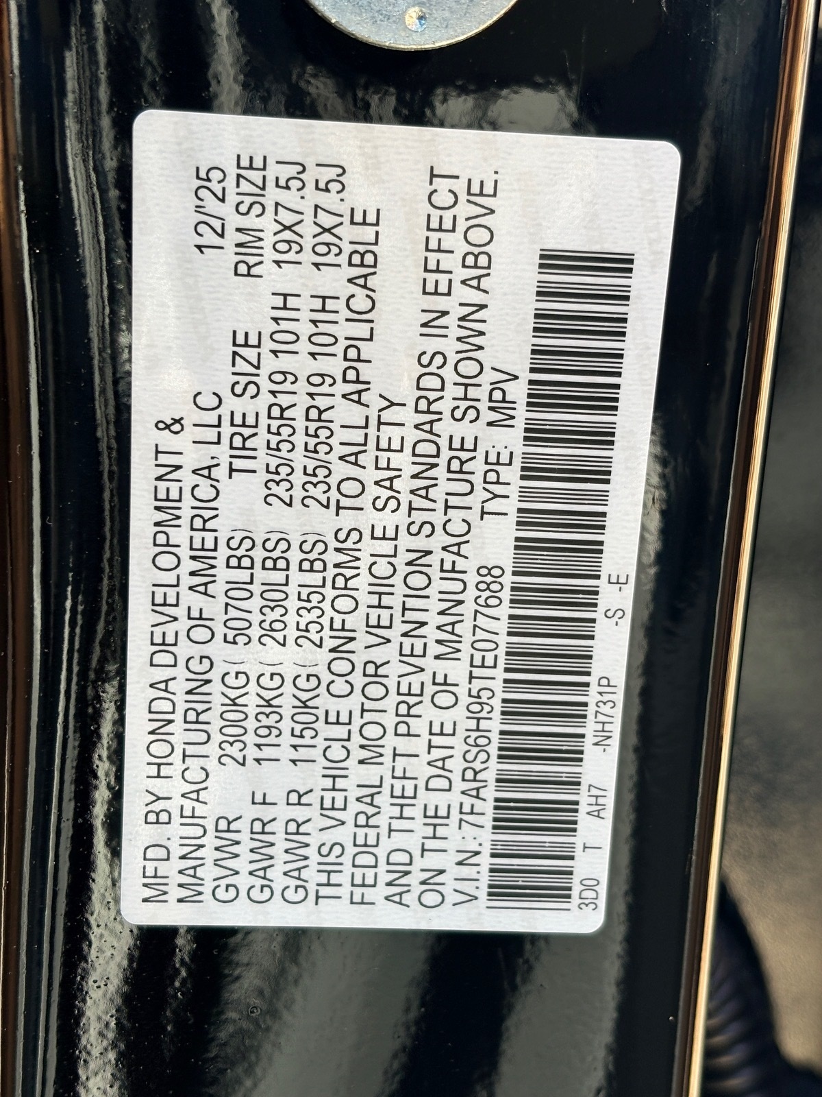 - VIN : 7FARS6H95TE077688