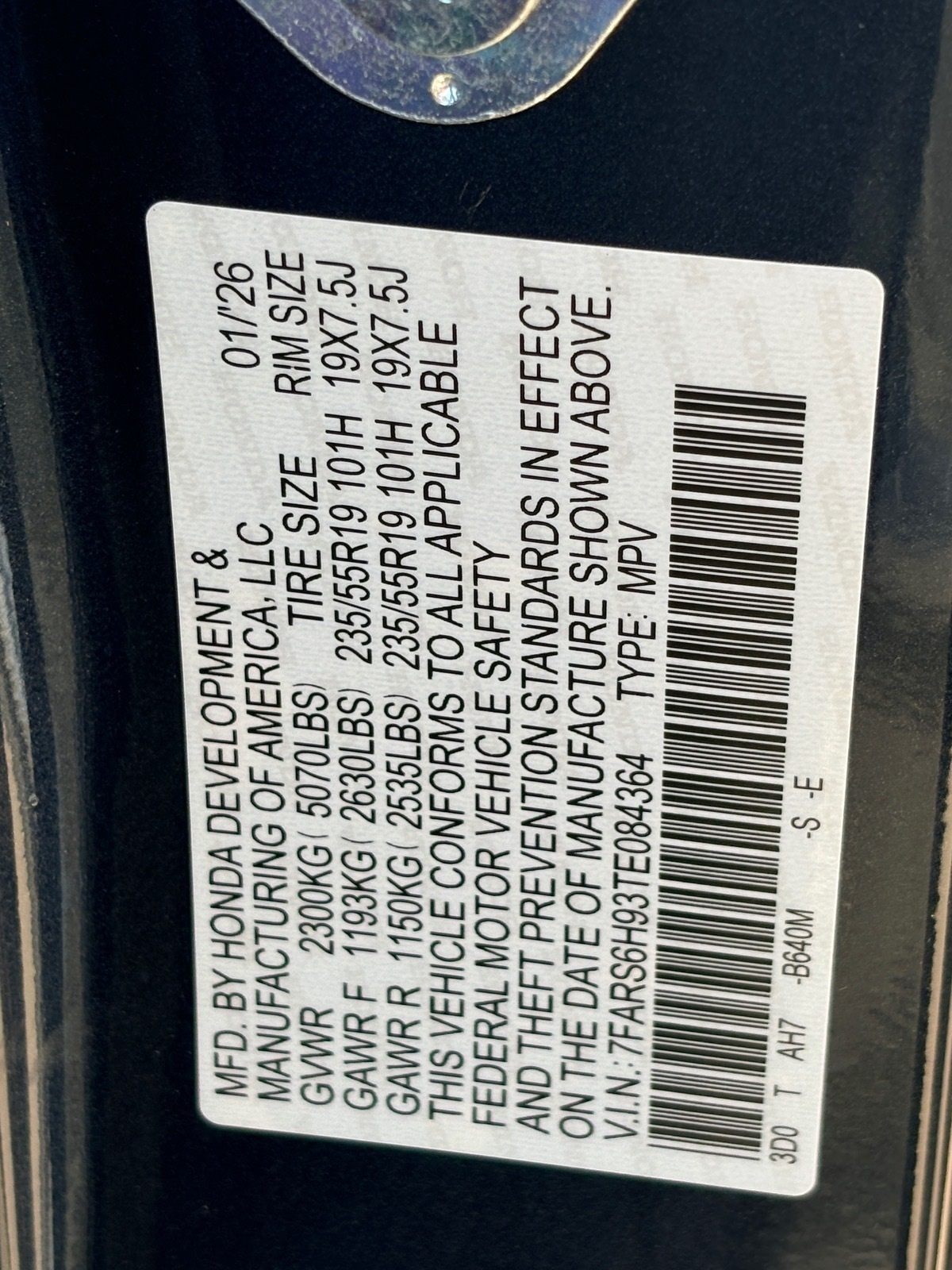 - VIN : 7FARS6H93TE084364