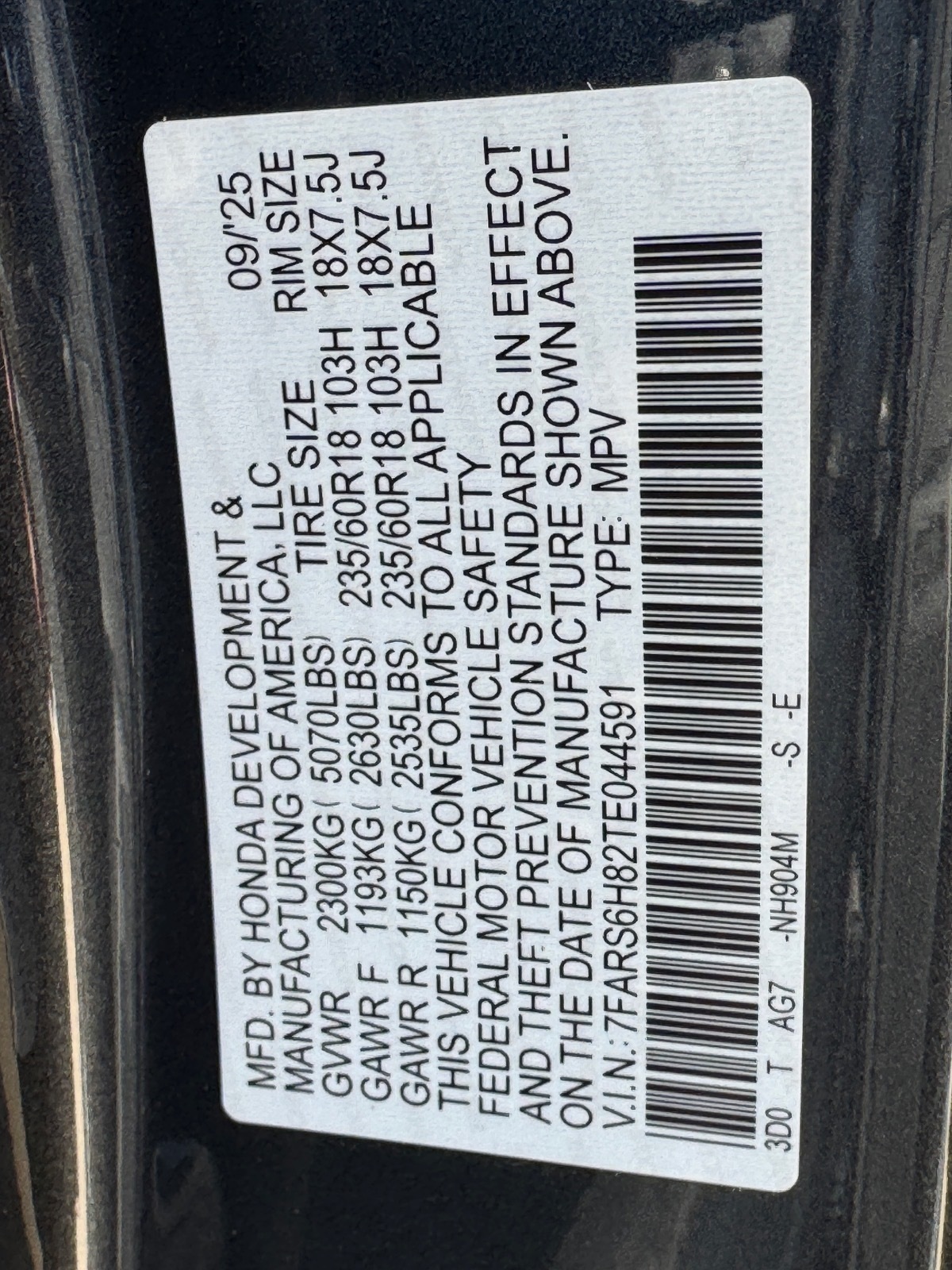 - VIN : 7FARS6H82TE044591