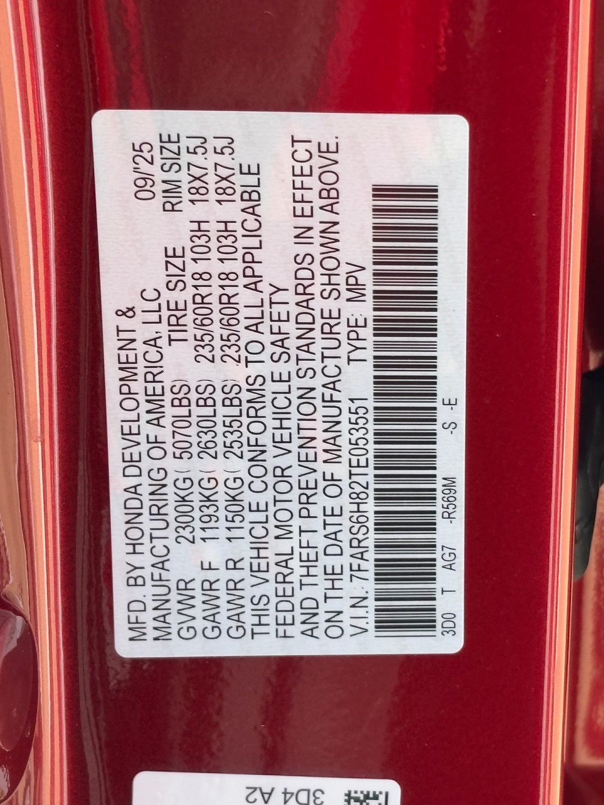 - VIN : 7FARS6H82TE053551