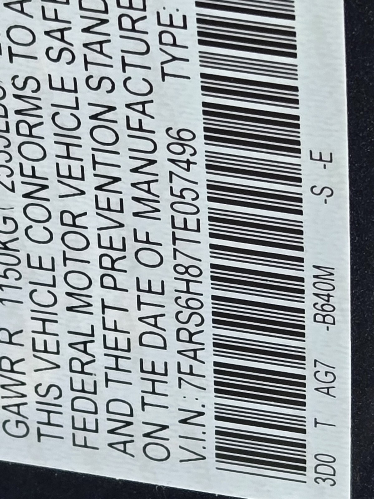 - VIN : 7FARS6H87TE057496