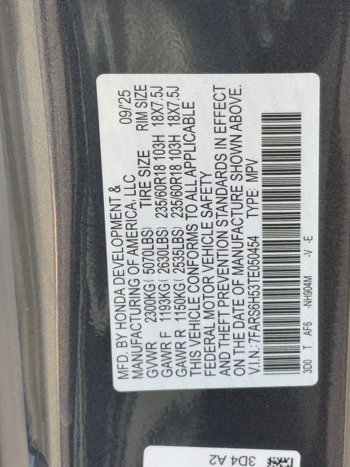 - VIN : 7FARS6H53TE050454