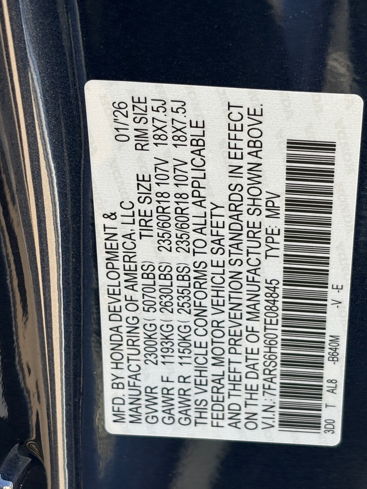 - VIN : 7FARS6H60TE084845