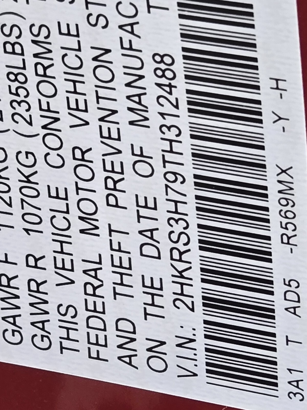 - VIN : 2HKRS3H79TH312488