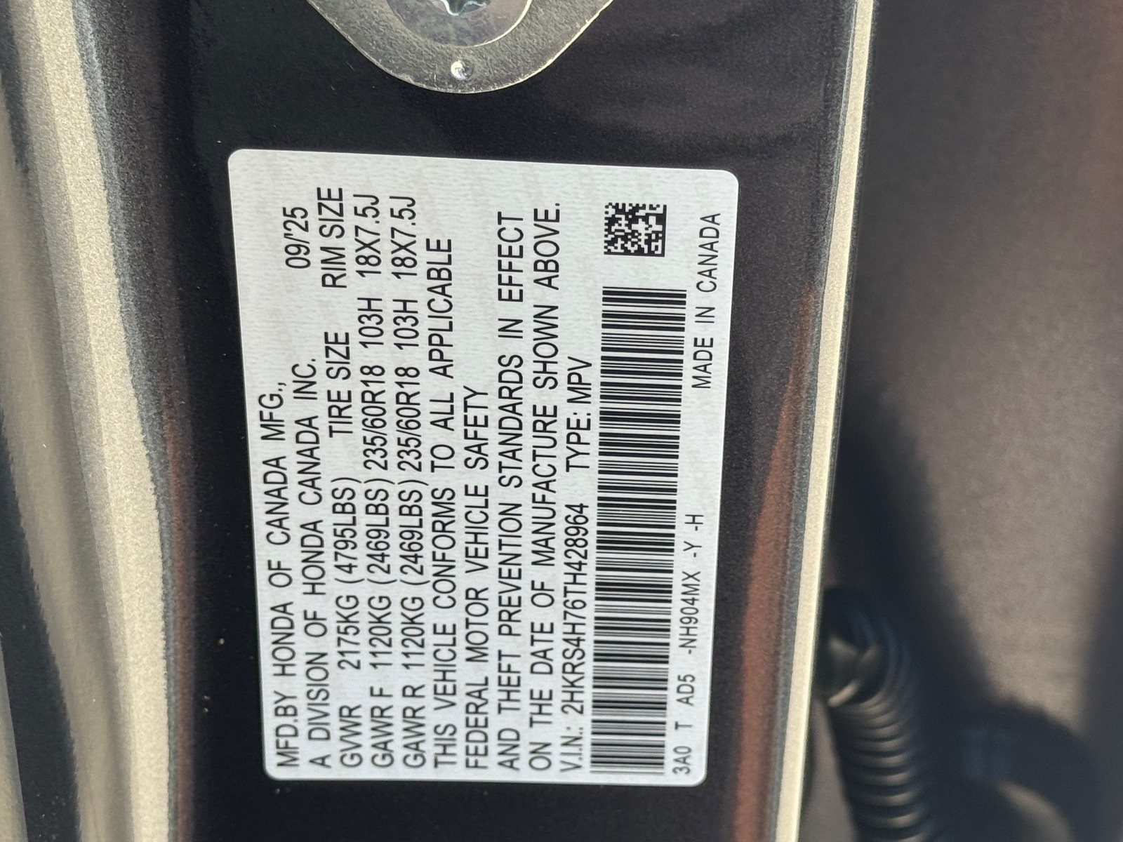 - VIN : 2HKRS4H76TH428964