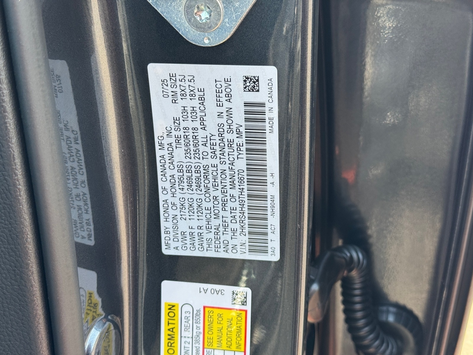 - VIN : 2HKRS4H49TH416670