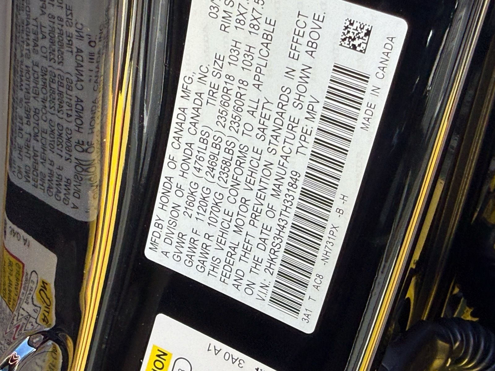 - VIN : 2HKRS3H43TH331849