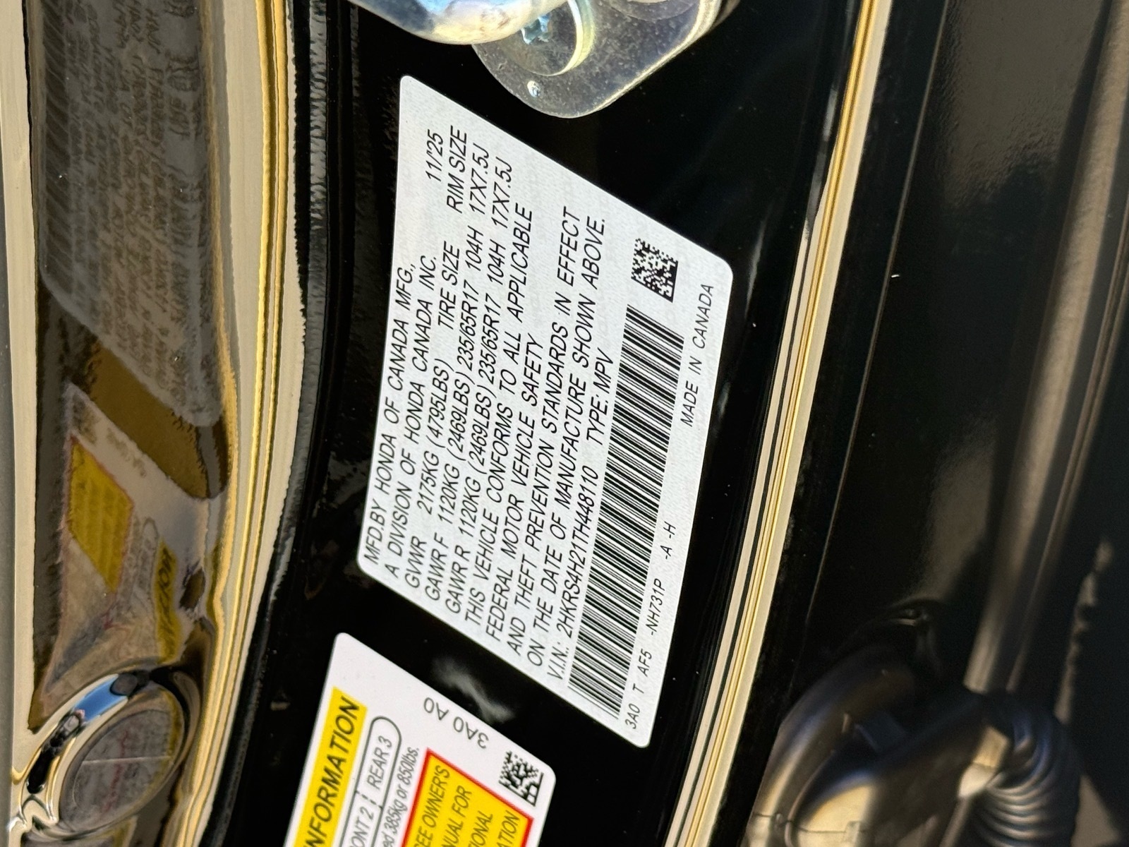 - VIN : 2HKRS4H21TH448110