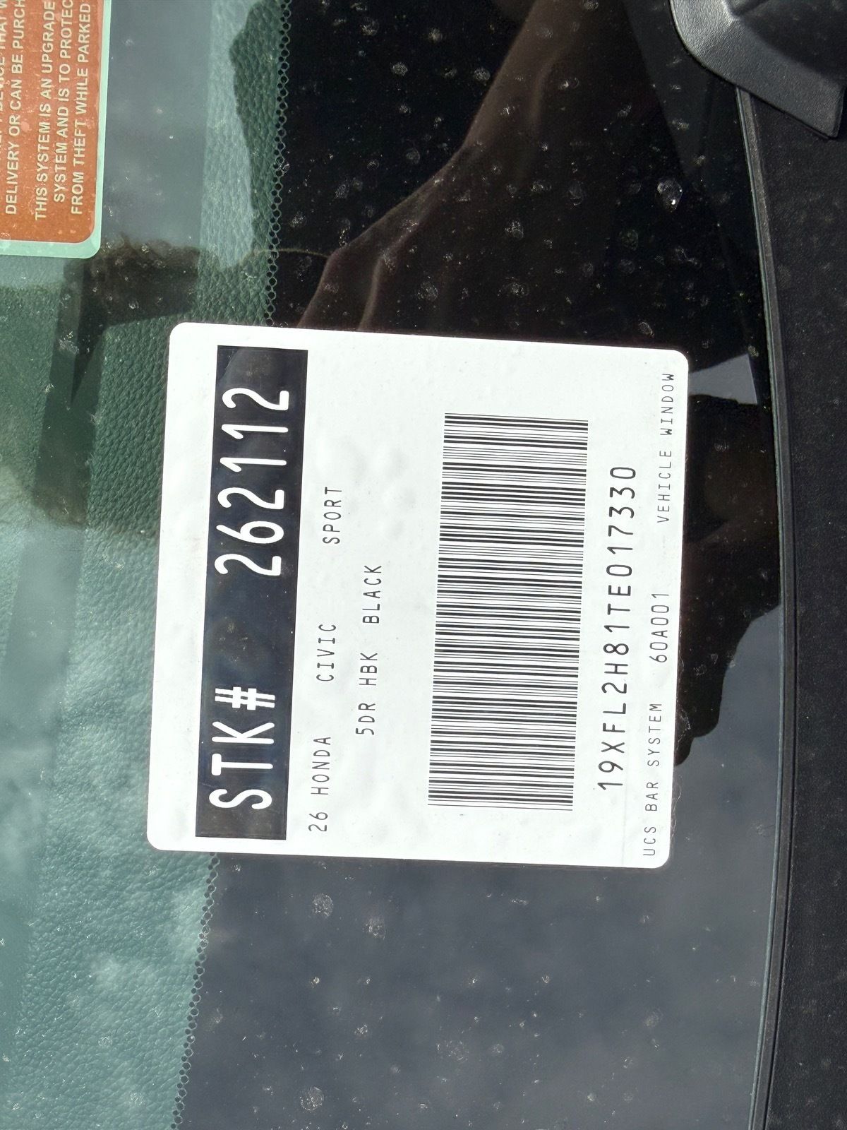 Crystal Black Pearl 2026 Honda Civic Hatchback Sport FWD CVT 2.0L I4 DOHC 16V