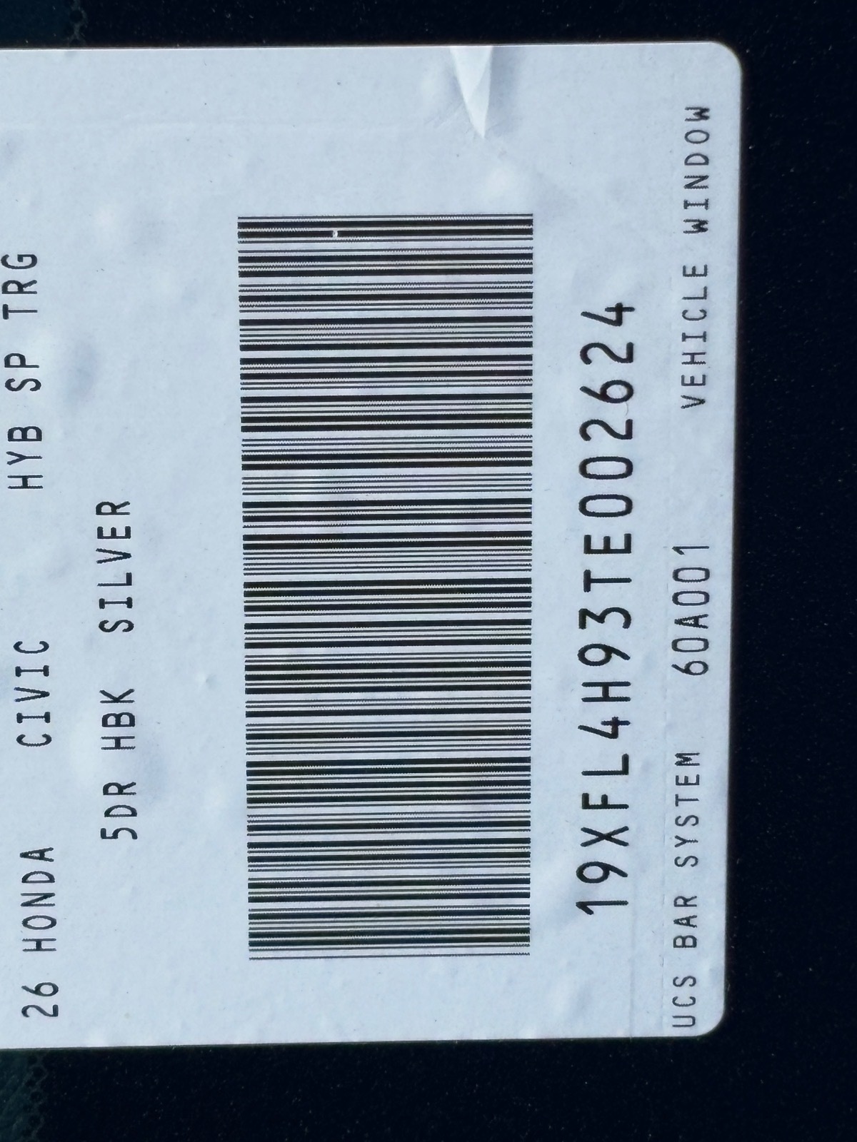 - VIN : 19XFL4H93TE002624