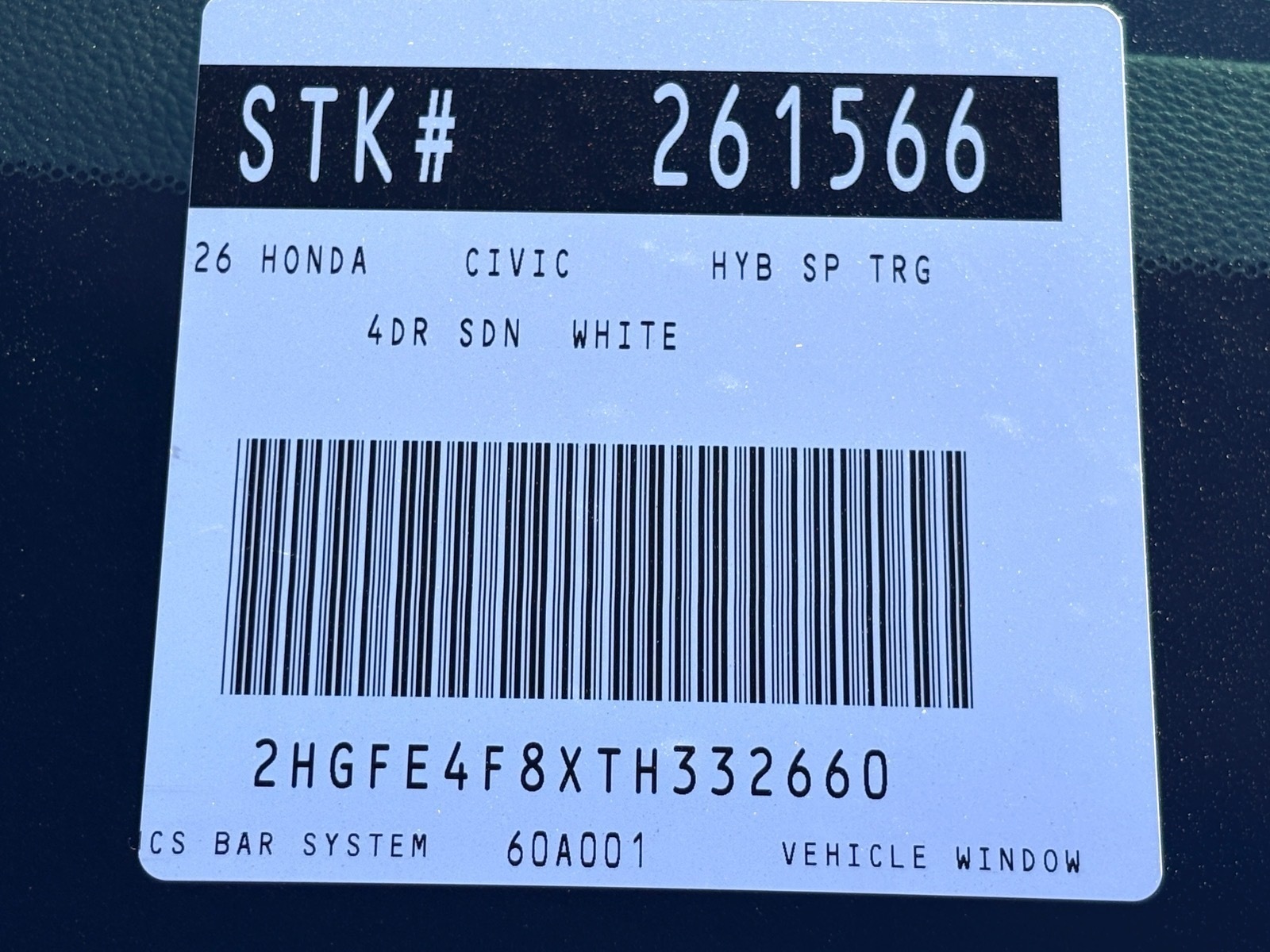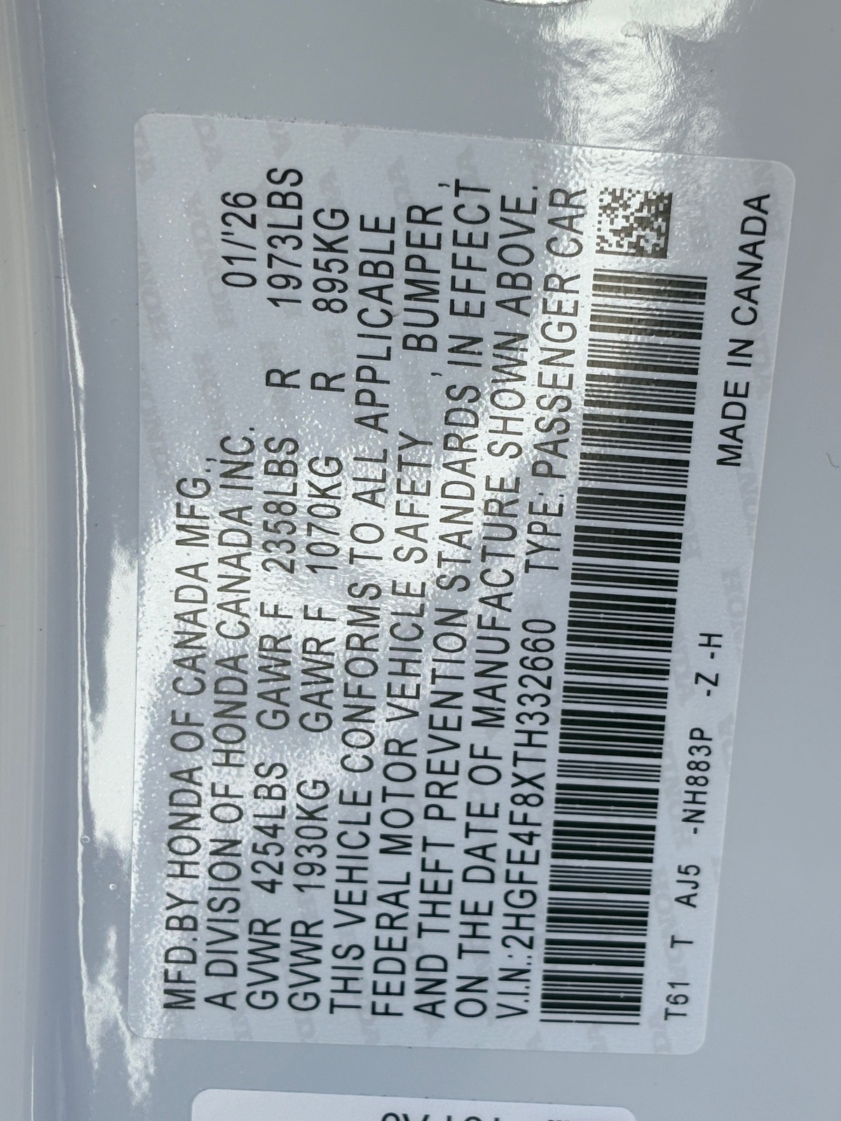 - VIN : 2HGFE4F8XTH332660