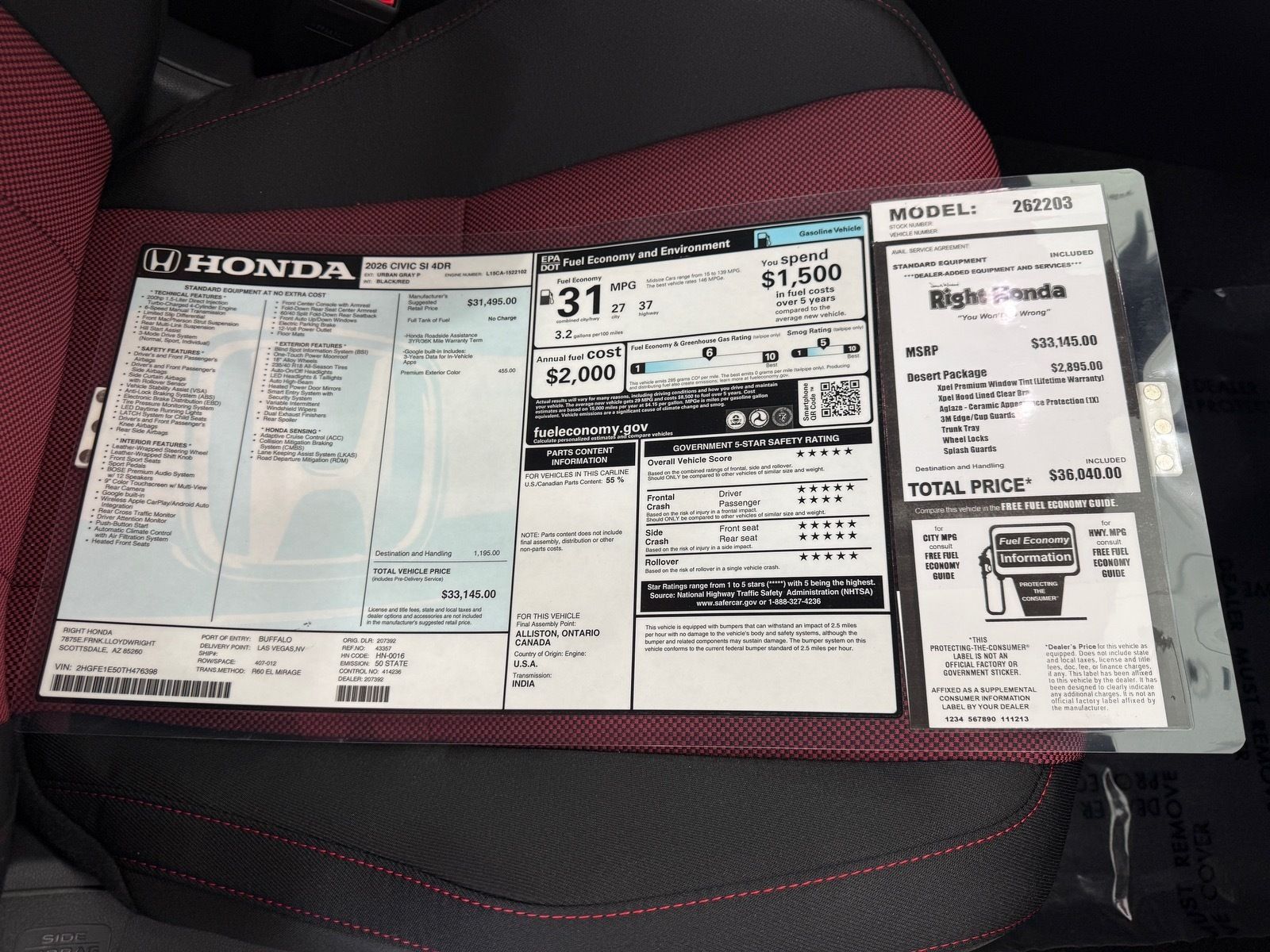 https://research.righthonda.com/cars/New/2026/Honda/Civic+Si/Base/170933892026 Honda Civic Si Base