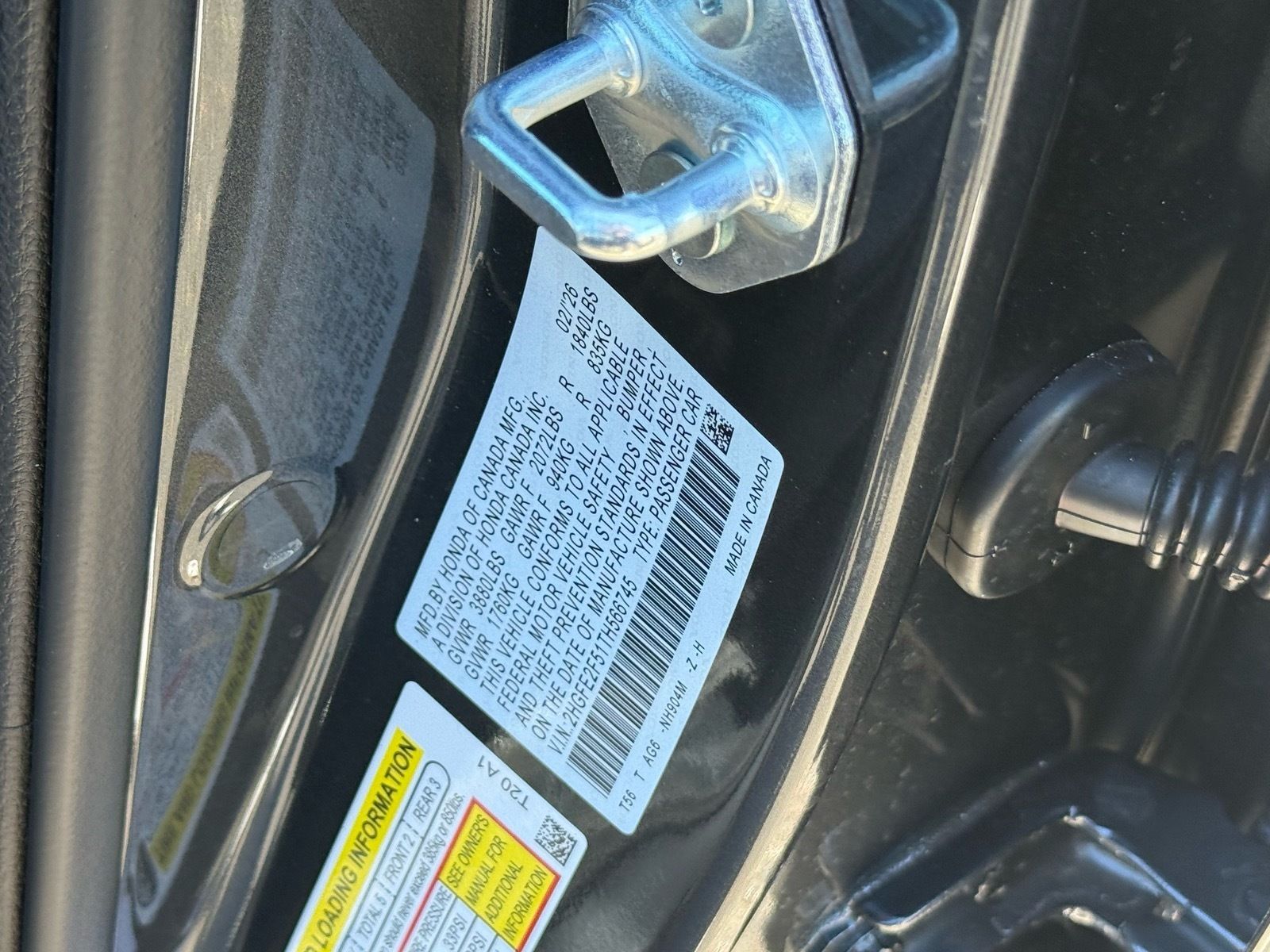 - VIN : 2HGFE2F51TH566745