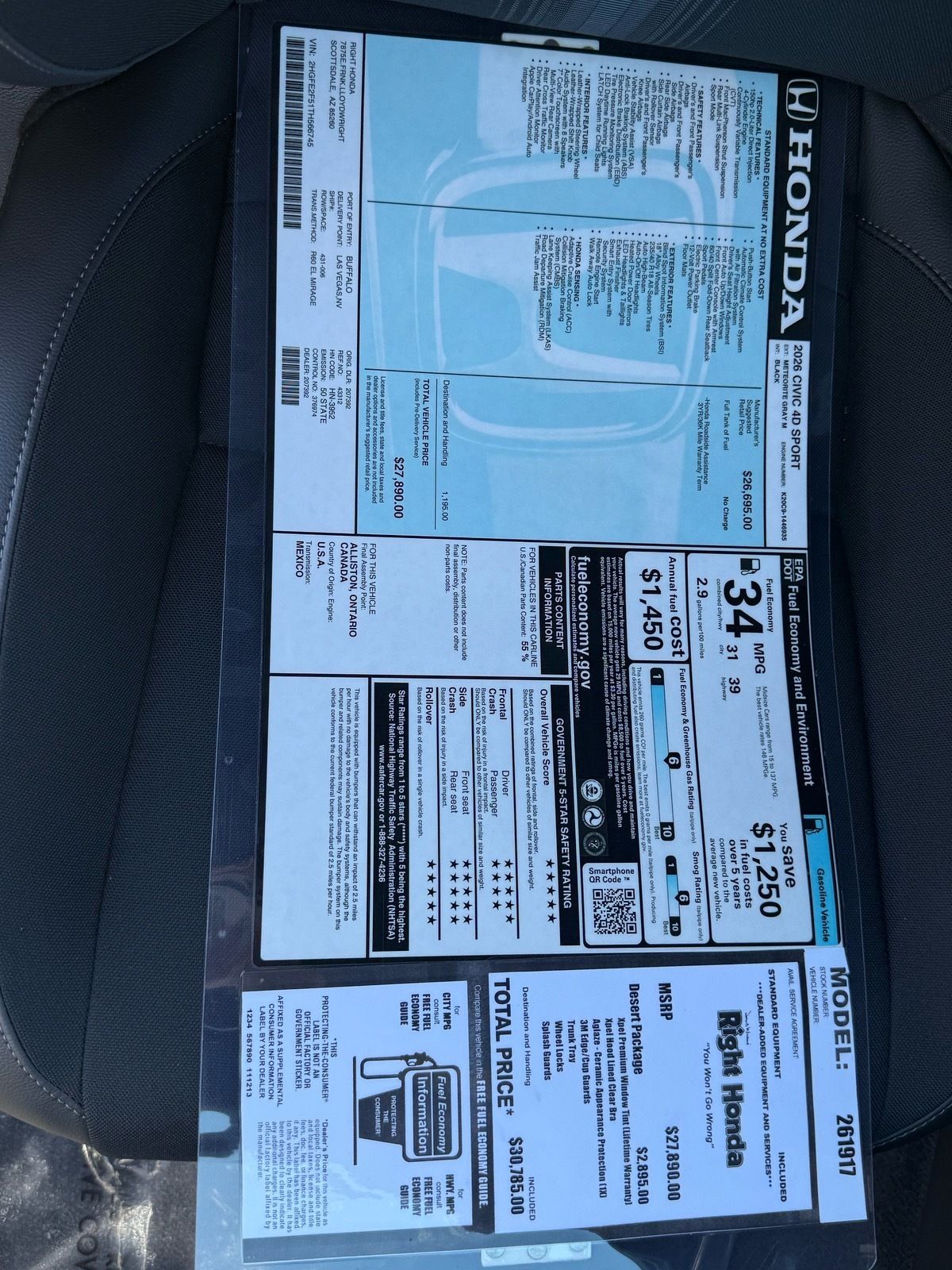 Recent Arrival! 31/39 City/Highway MPG Price includes: $500 - Honda Graduate Offer. Exp. 03/31/2026 $500 - Honda Military Appreciation Offer. Exp. 03/31/2026 $500 - Loyalty/Conquest. Exp. 04/30/2026
