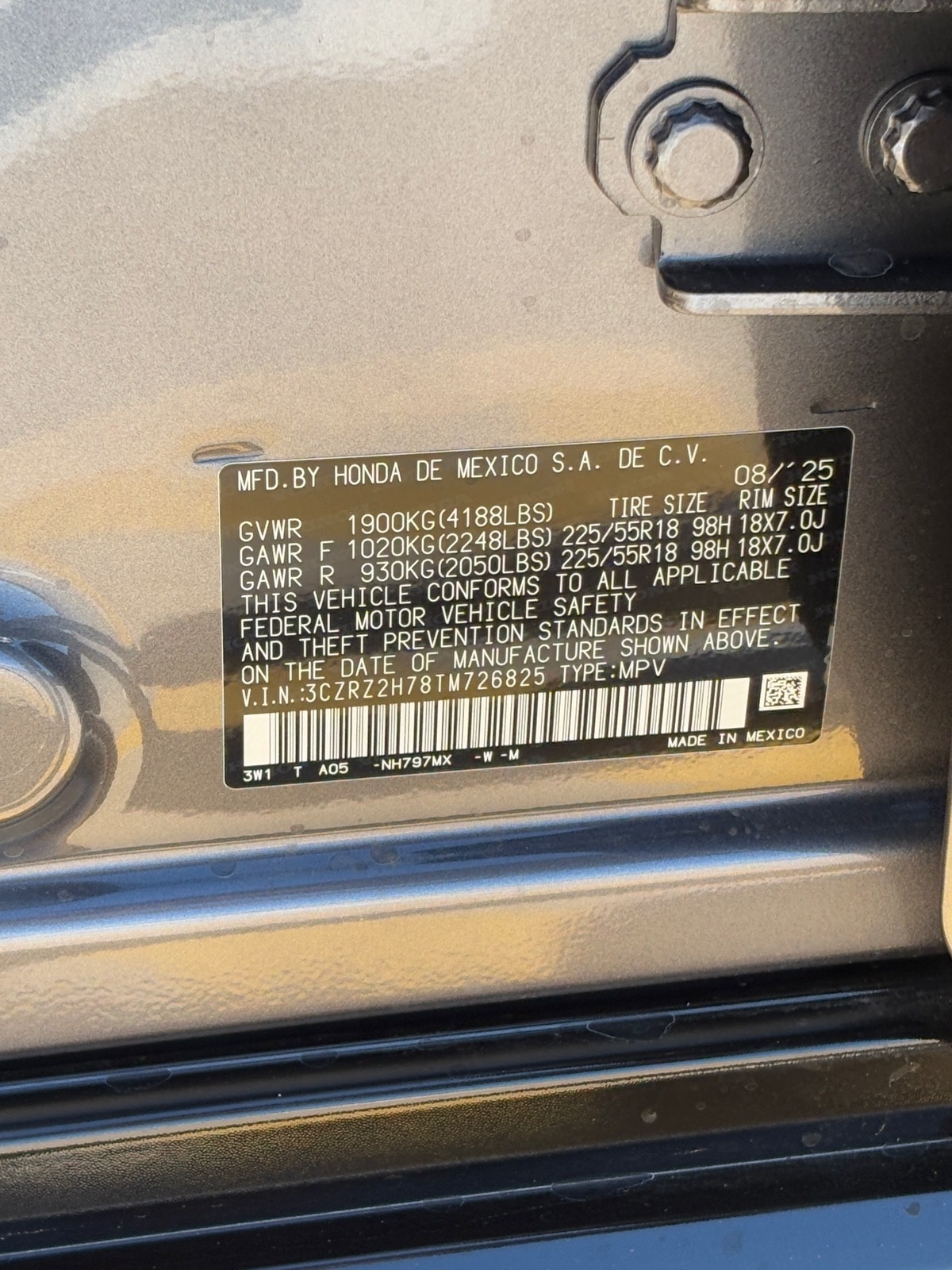 - VIN : 3CZRZ2H78TM726825
