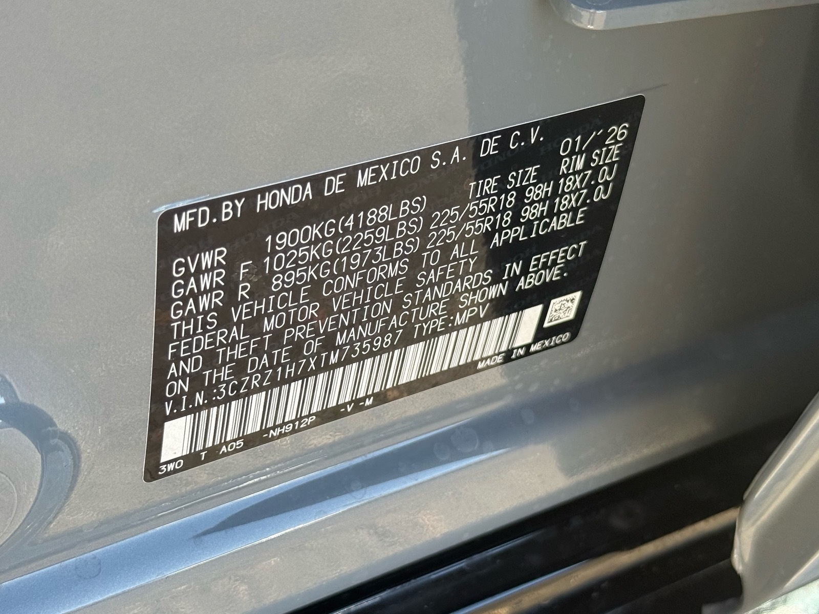 - VIN : 3CZRZ1H7XTM735987
