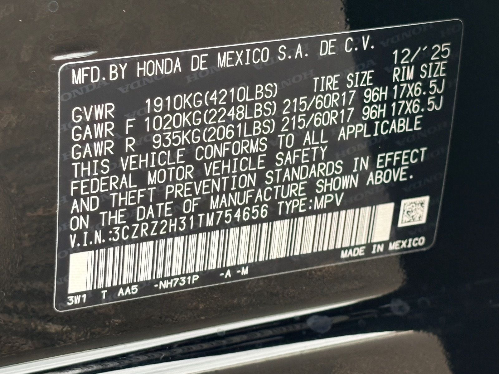 - VIN : 3CZRZ2H31TM754656