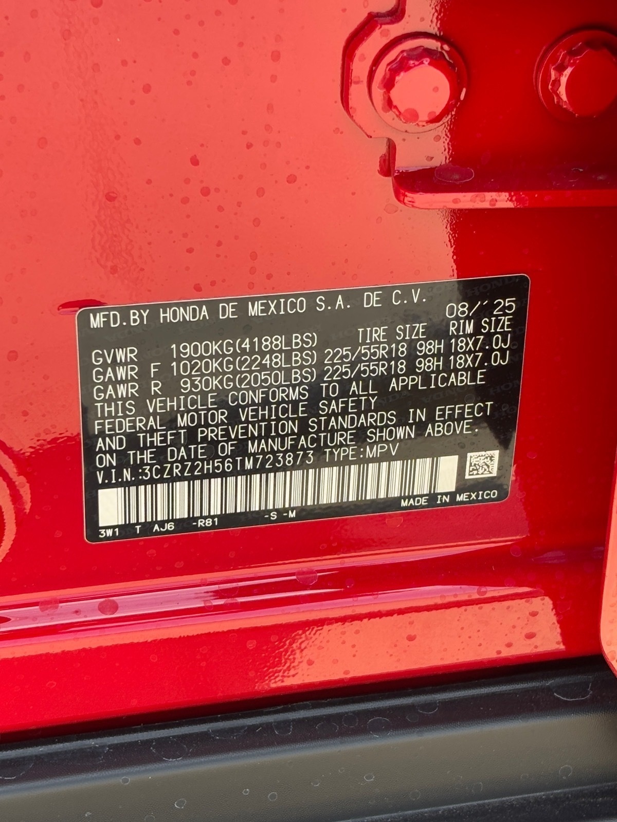 - VIN : 3CZRZ2H56TM723873