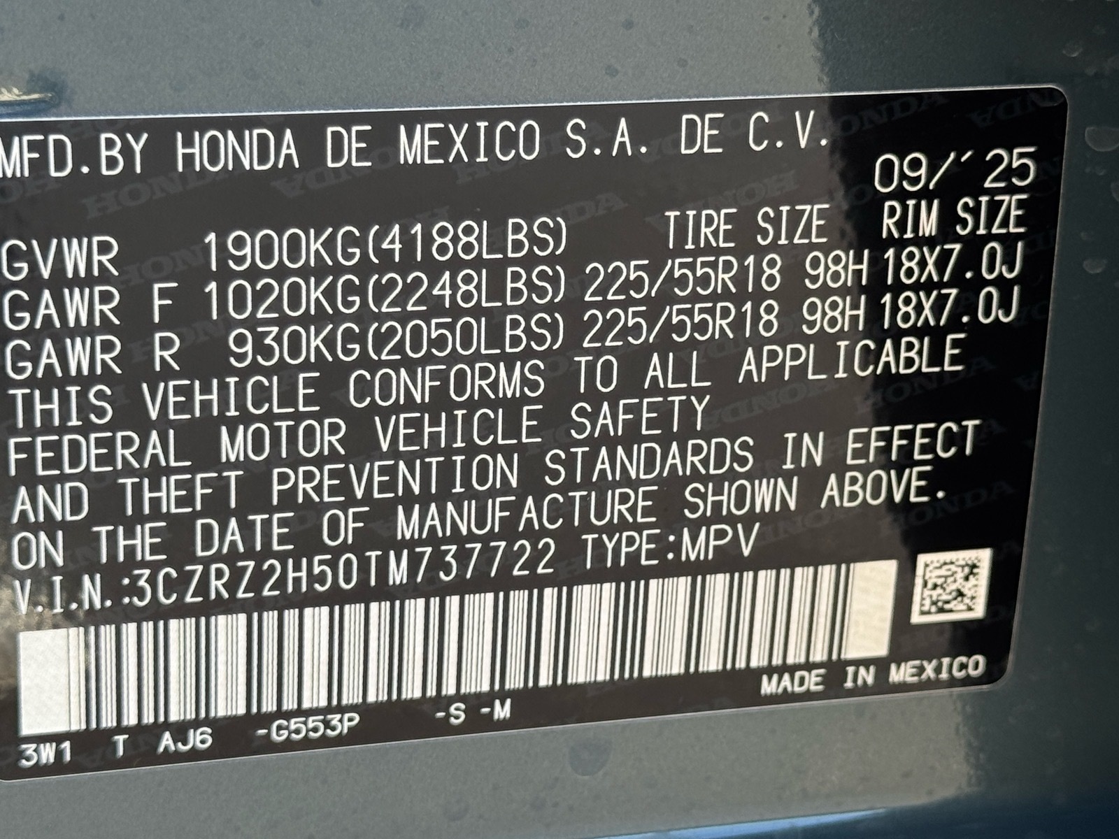 - VIN : 3CZRZ2H50TM737722