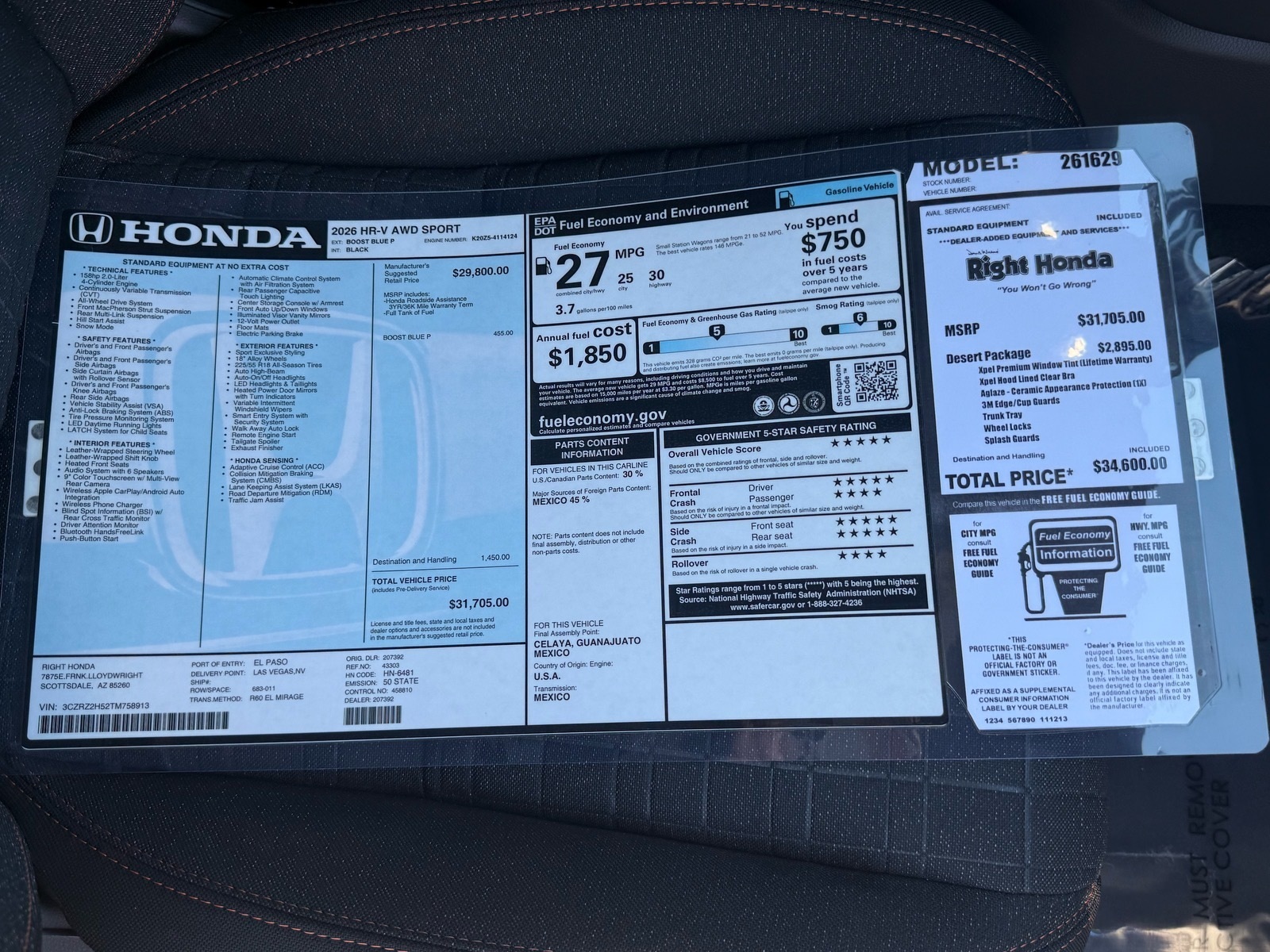https://research.righthonda.com/cars/New/2026/Honda/HR-V/Sport/168958632026 Honda HR-V Sport