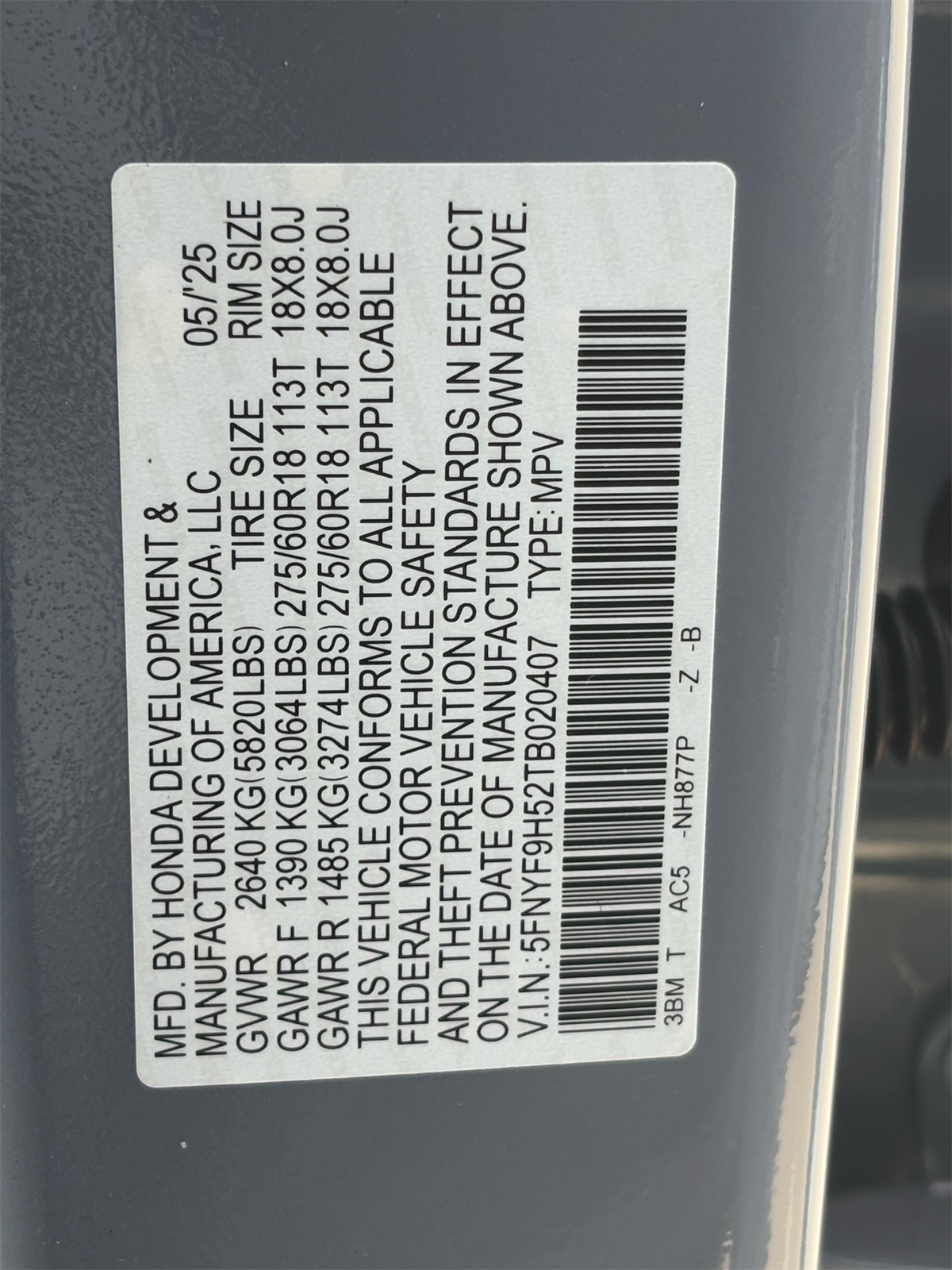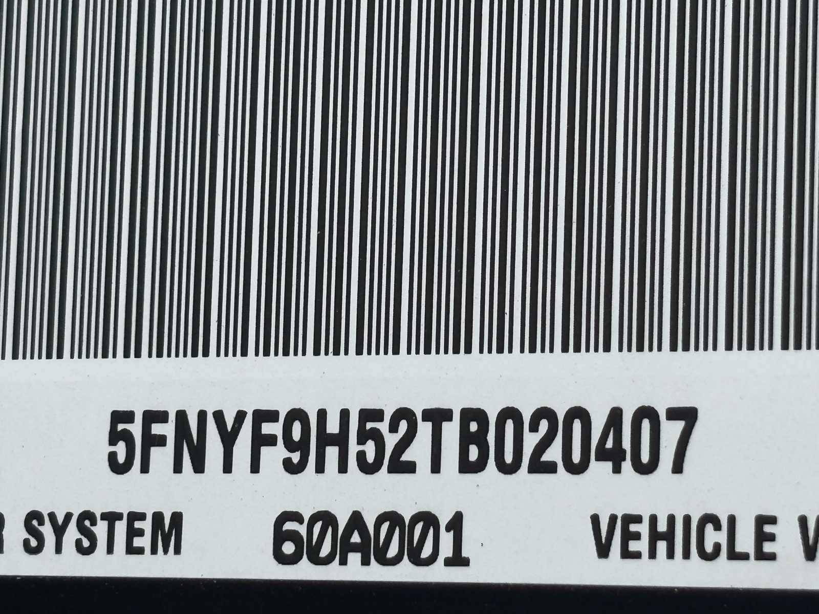 - VIN : 5FNYF9H52TB020407