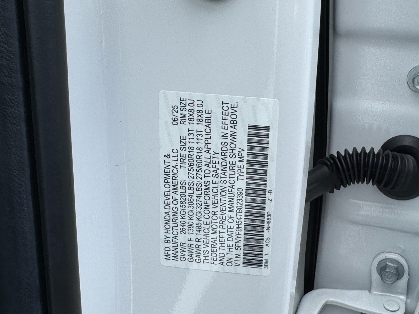 - VIN : 5FNYF9H54TB023390