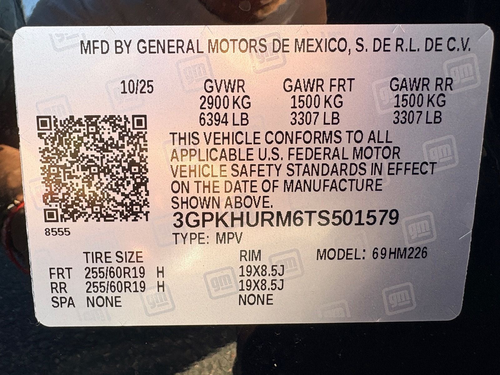 - VIN : 3GPKHURM6TS501579