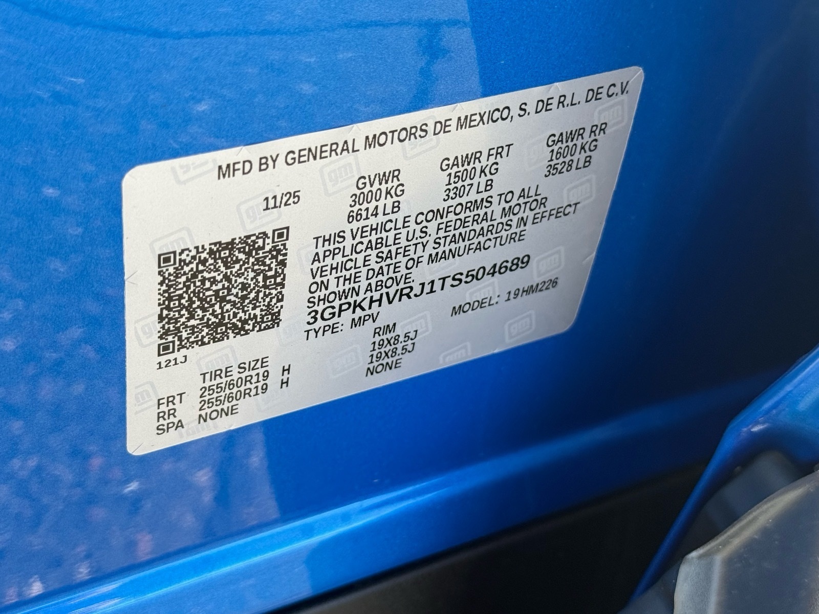 - VIN : 3GPKHVRJ1TS504689