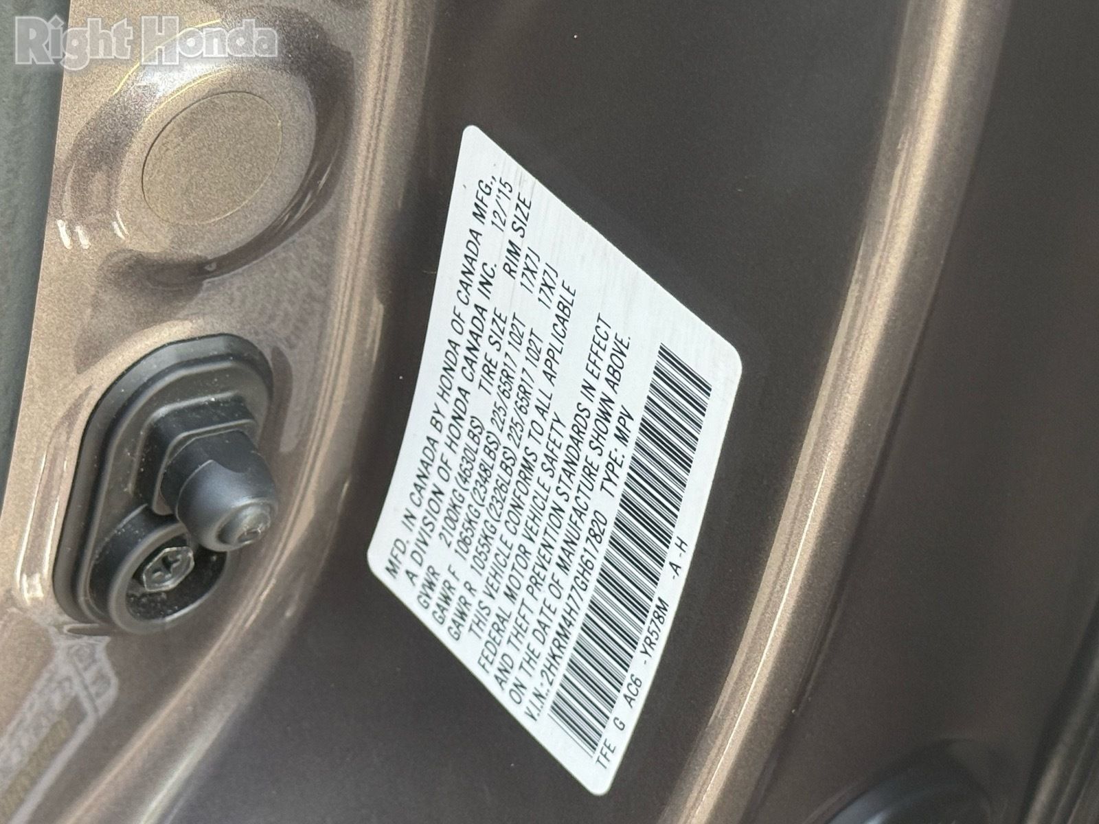 - VIN : 2HKRM4H77GH617820