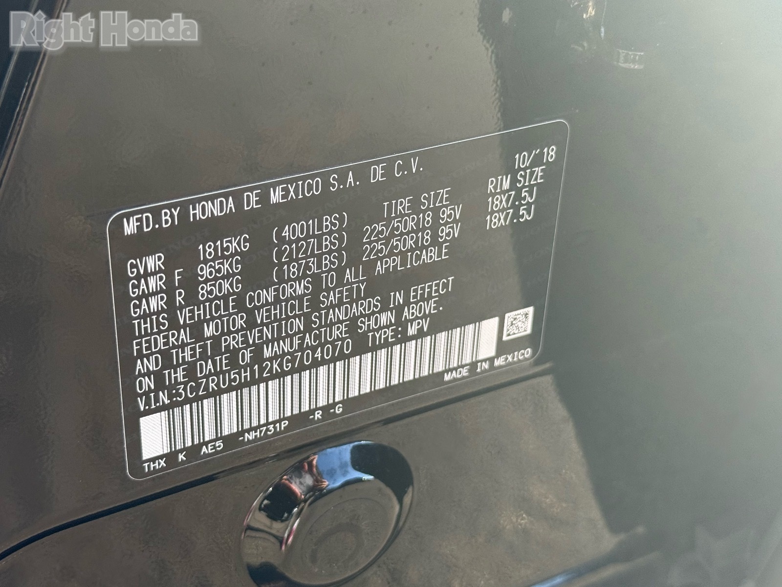 - VIN : 3CZRU5H12KG704070