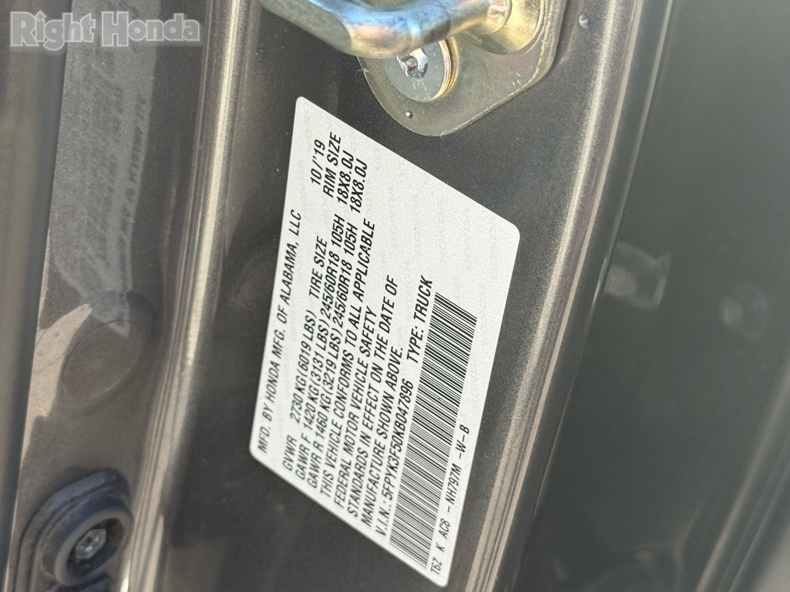 - VIN : 5FPYK3F50KB047896