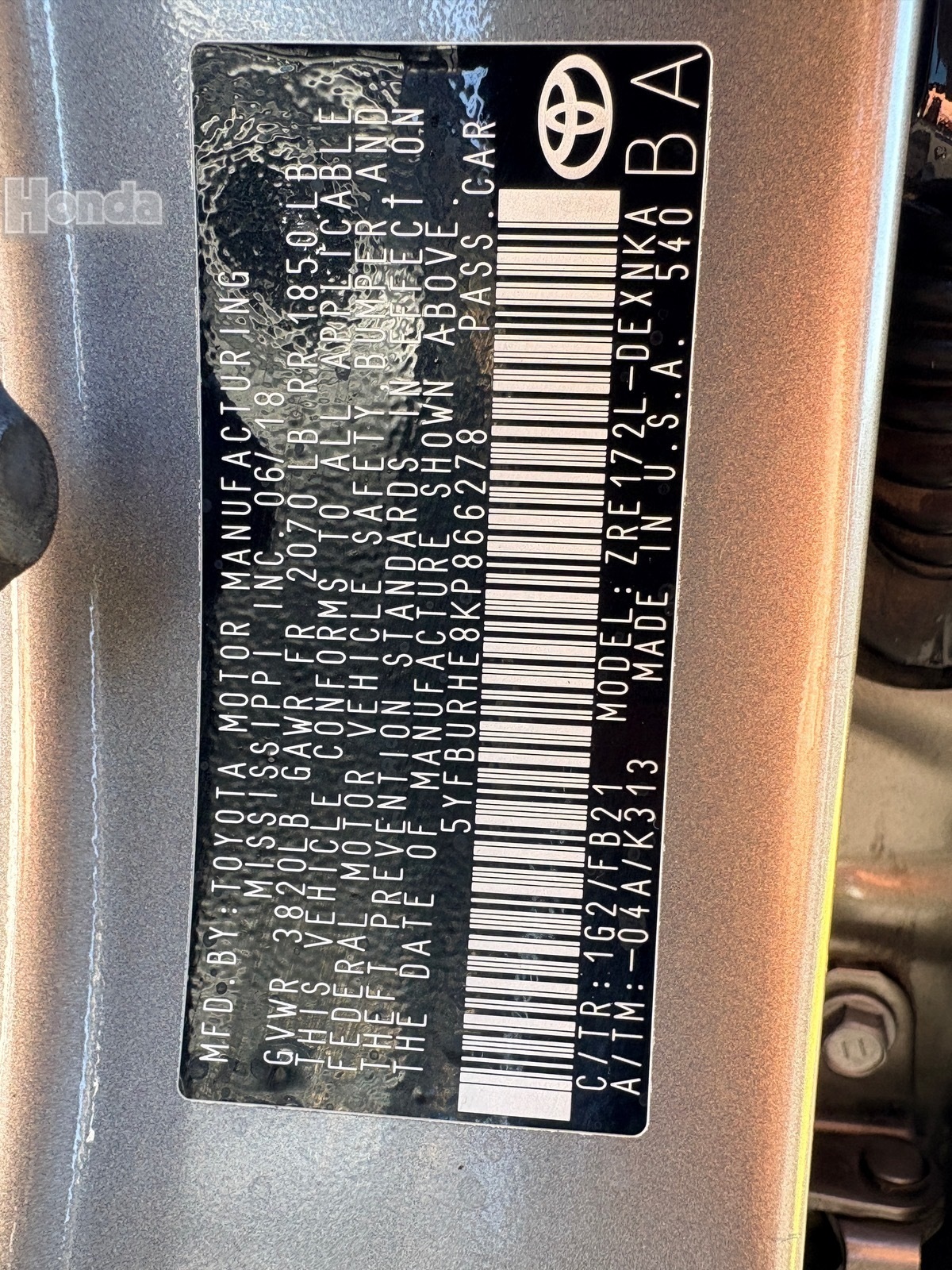 - VIN : 5YFBURHE8KP866278