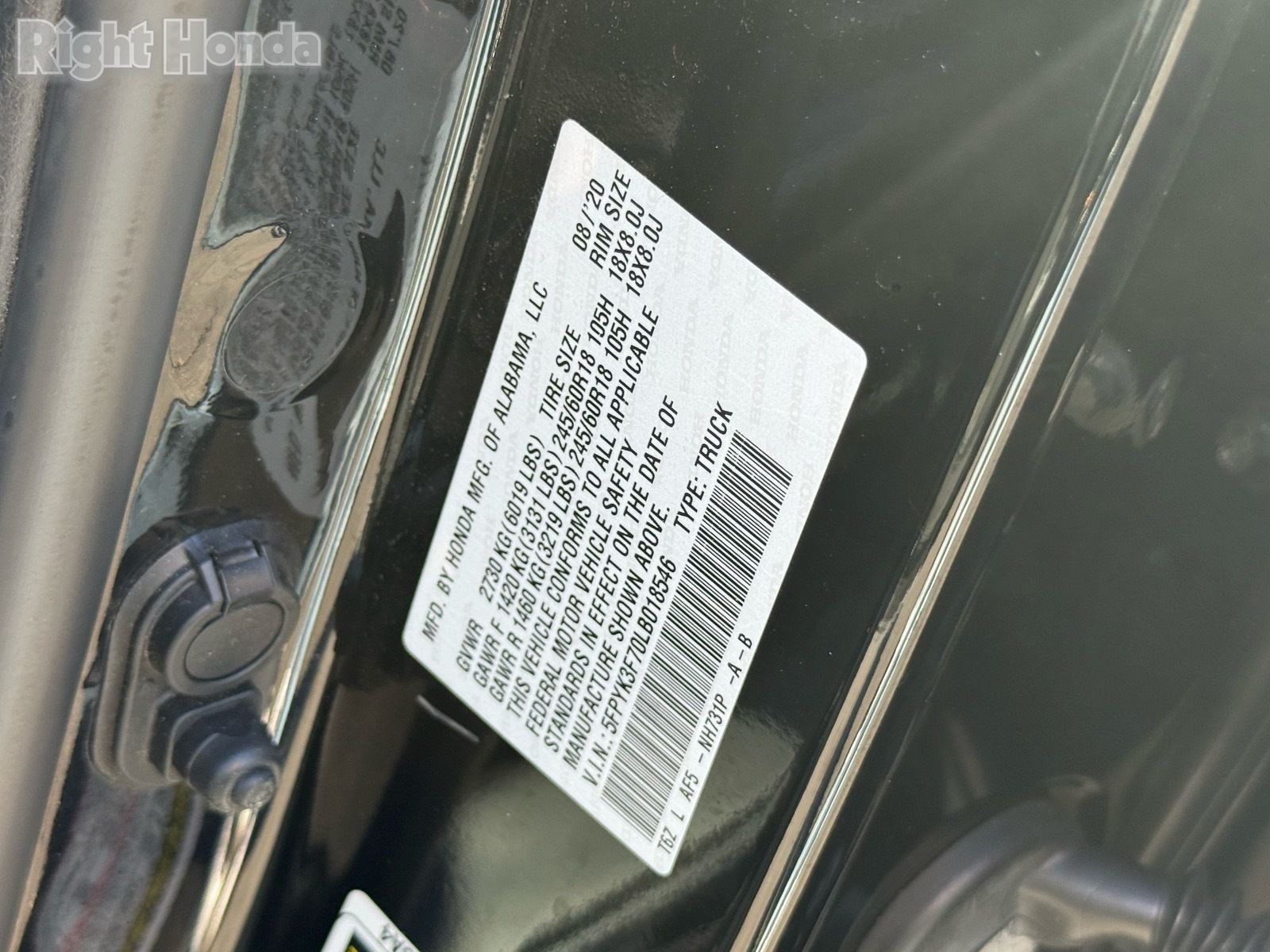 - VIN : 5FPYK3F70LB018546