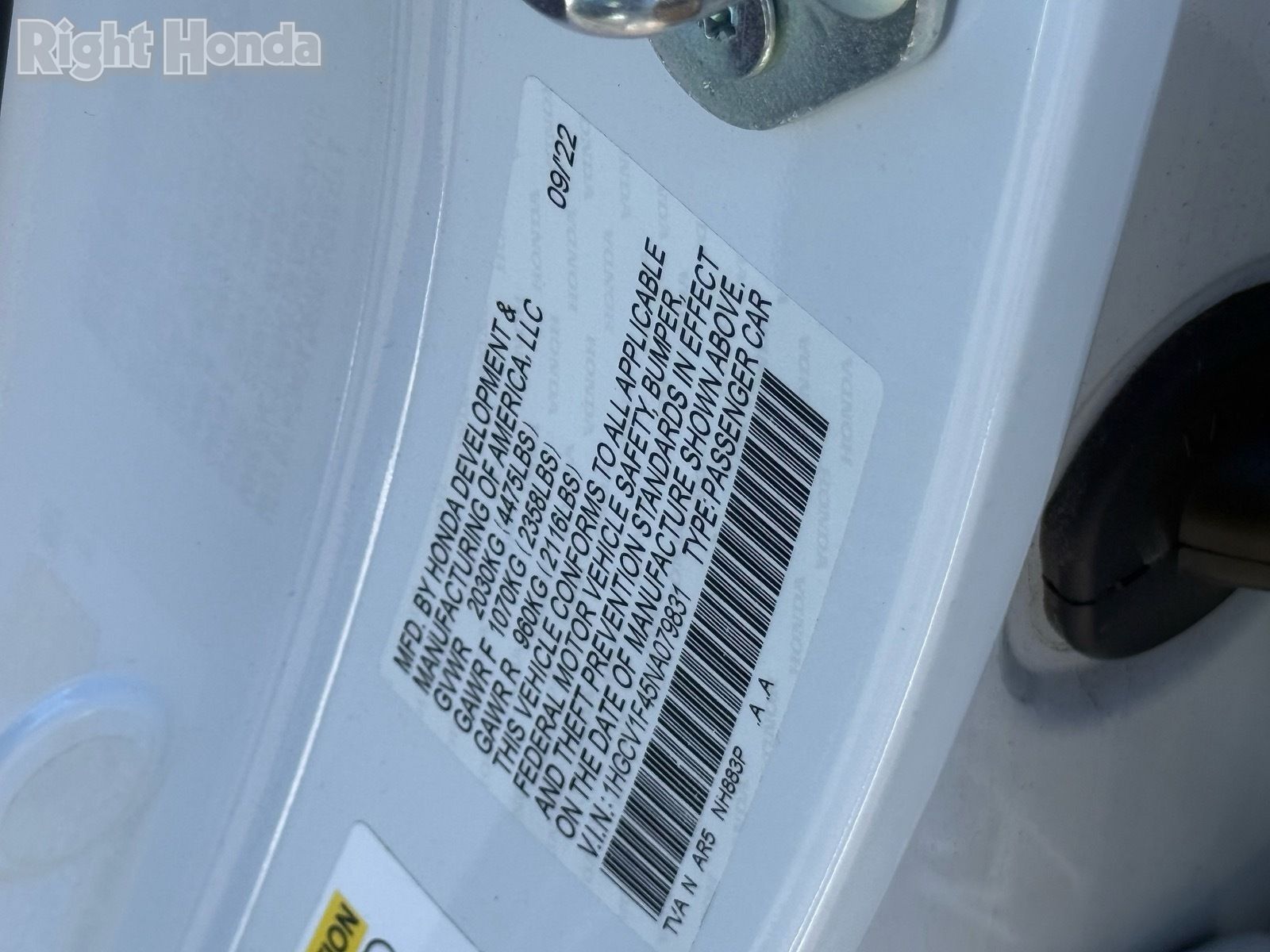 - VIN : 1HGCV1F45NA079831
