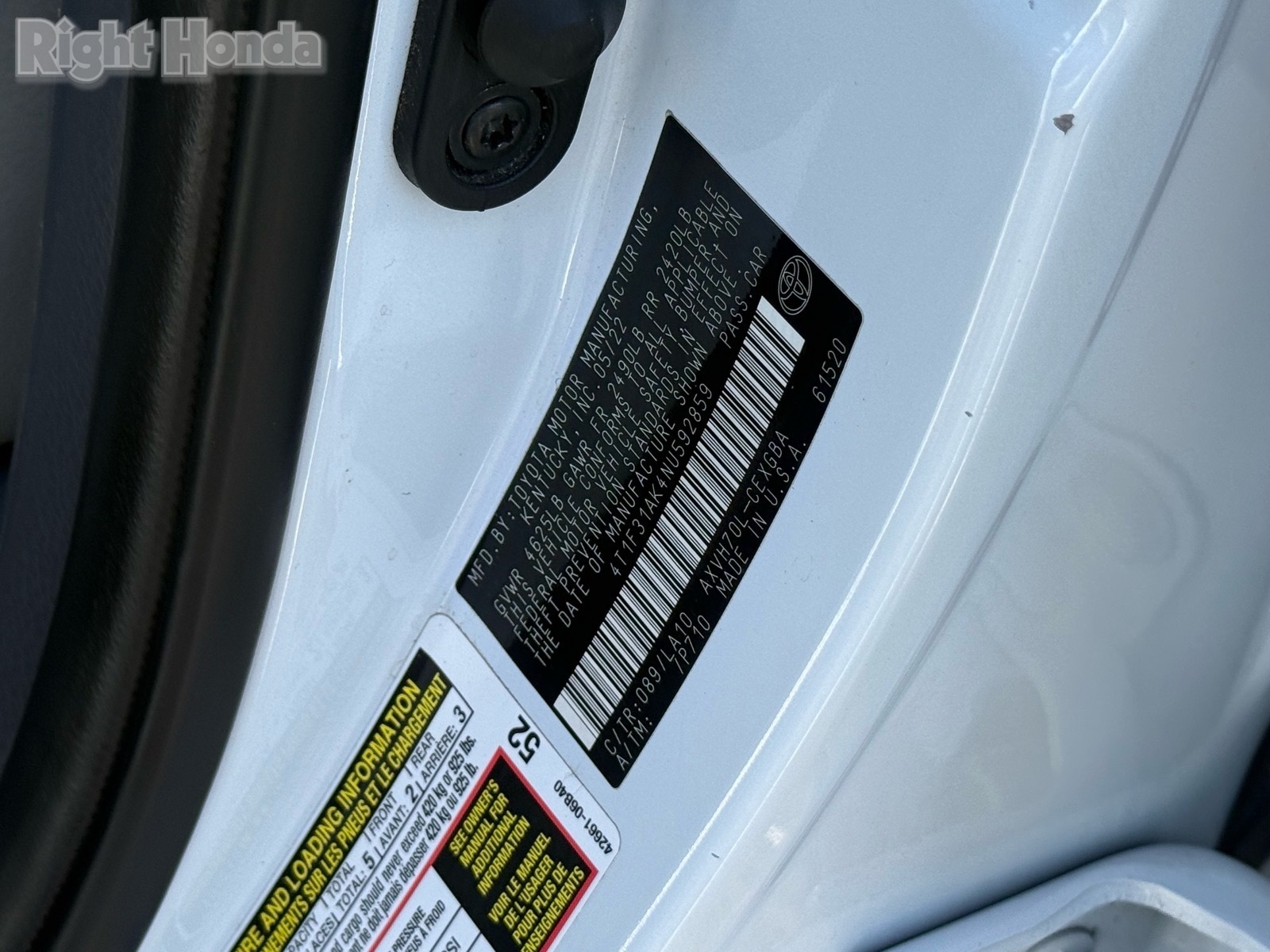 - VIN : 4T1F31AK4NU592859
