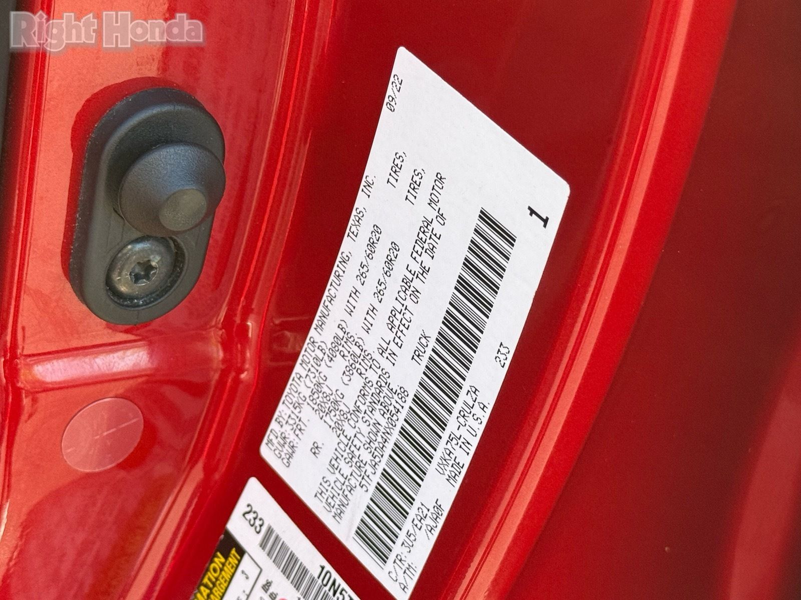 - VIN : 5TFJA5DA4NX054188
