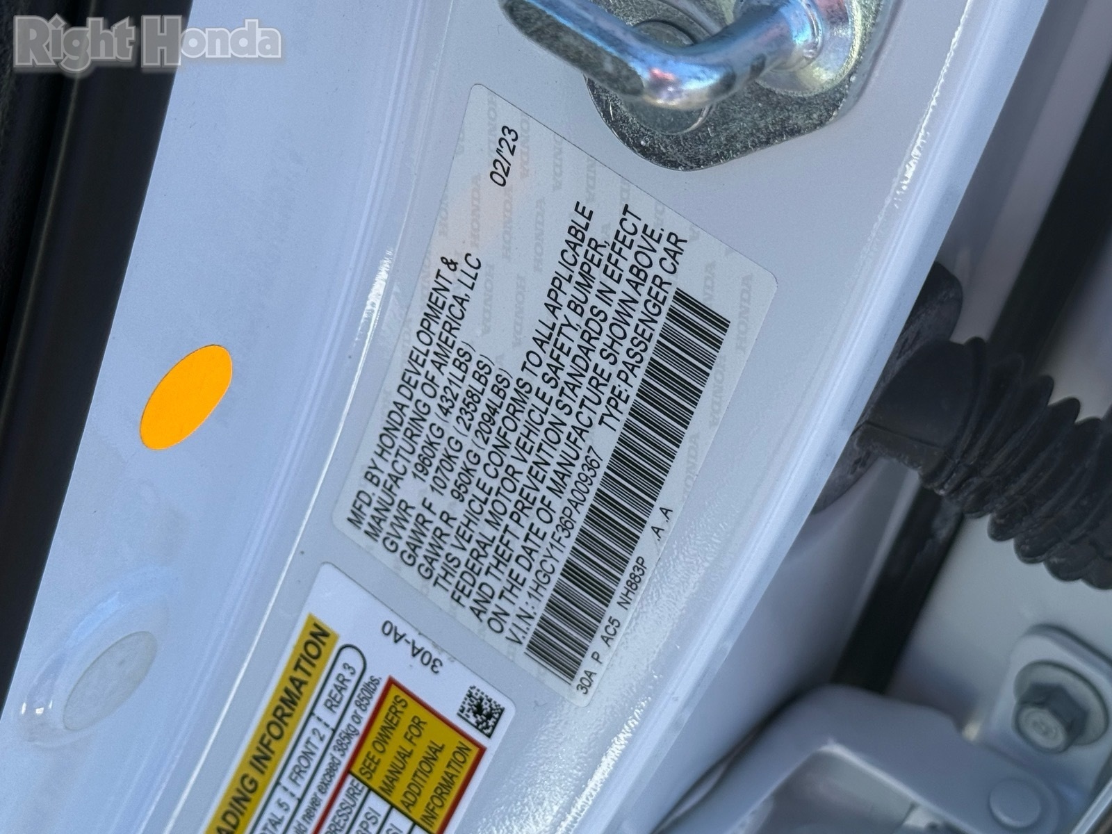 - VIN : 1HGCY1F36PA009367
