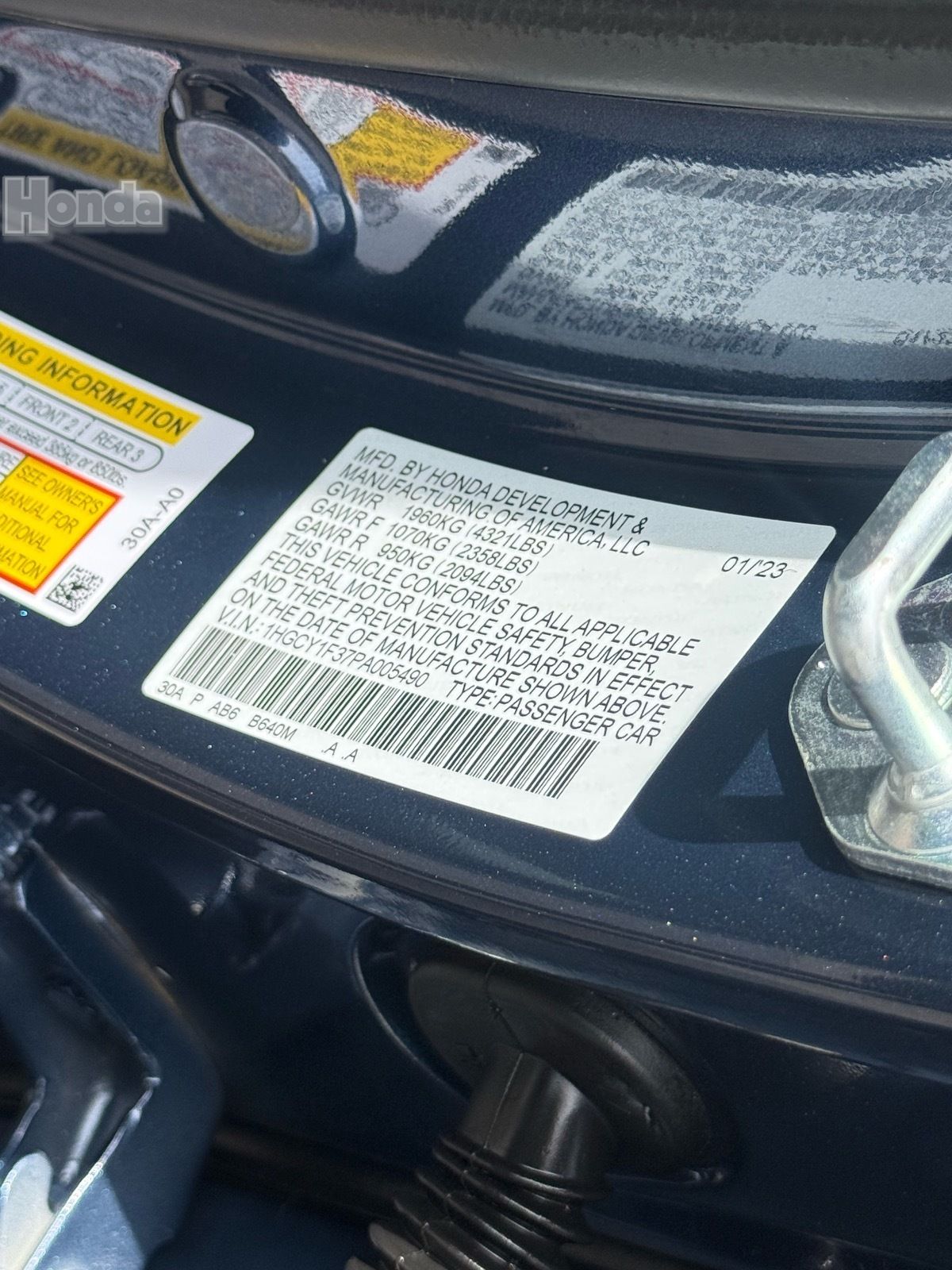 - VIN : 1HGCY1F37PA005490