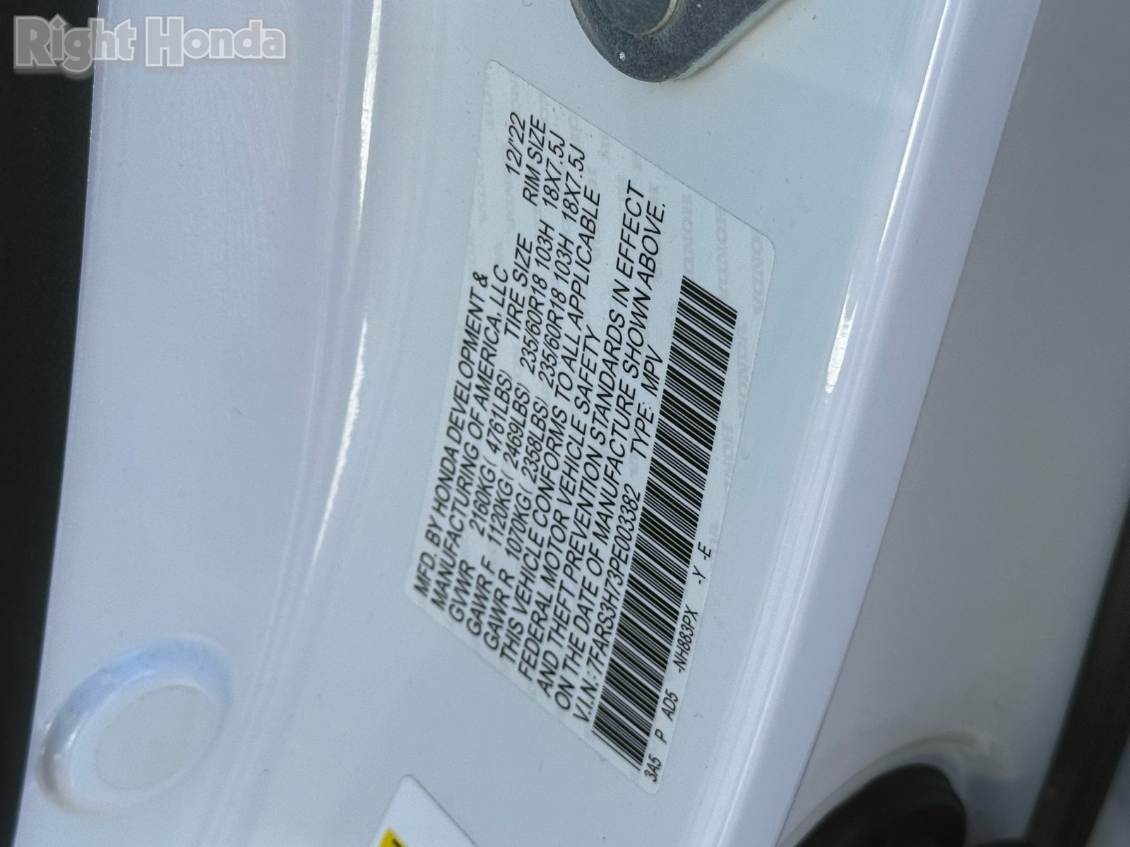 - VIN : 7FARS3H73PE003382
