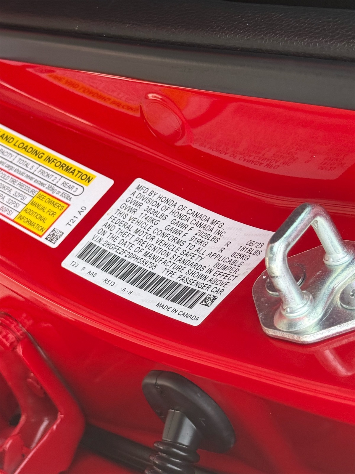 - VIN : 2HGFE2F29PH559795