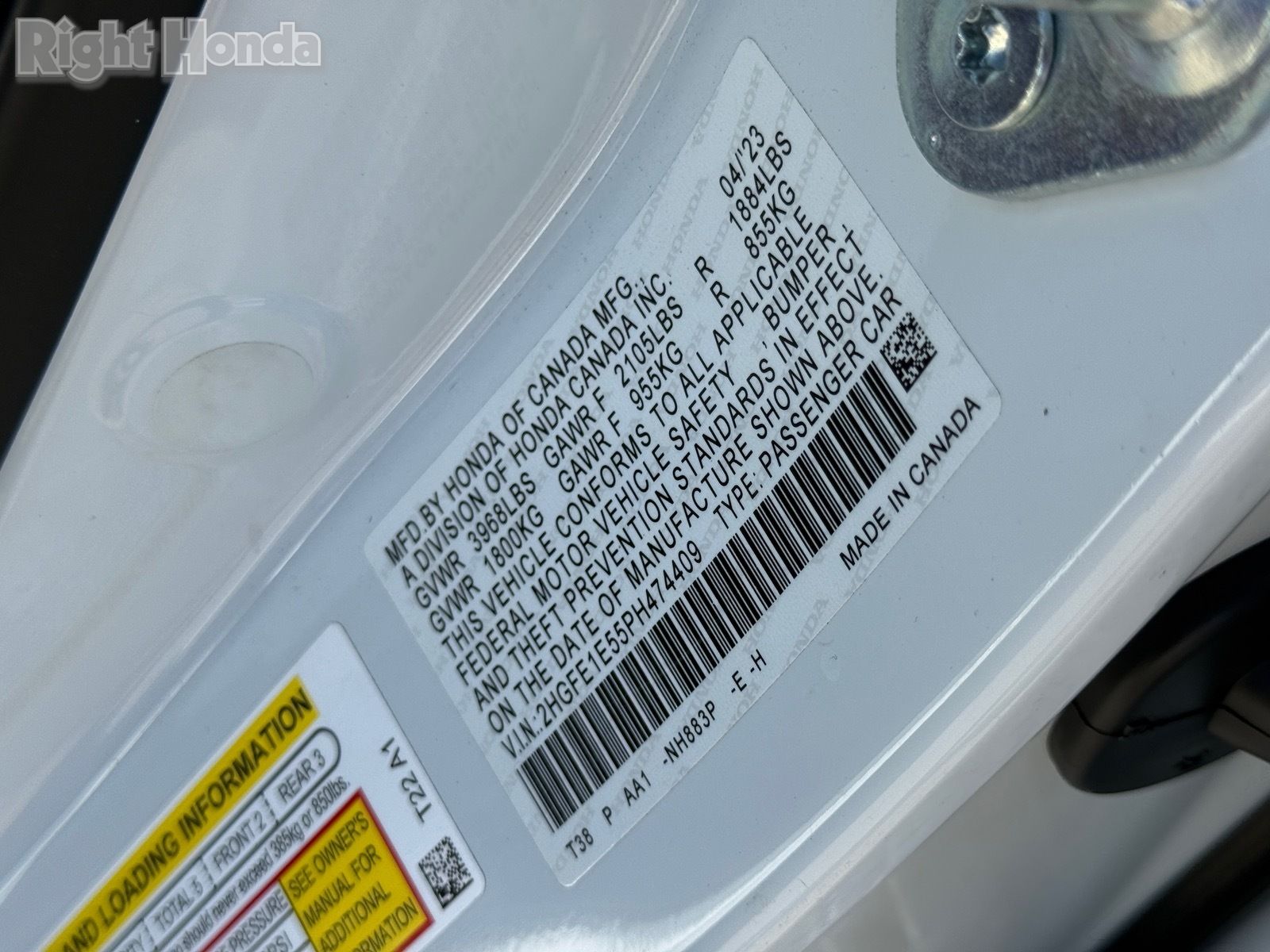 - VIN : 2HGFE1E55PH474409