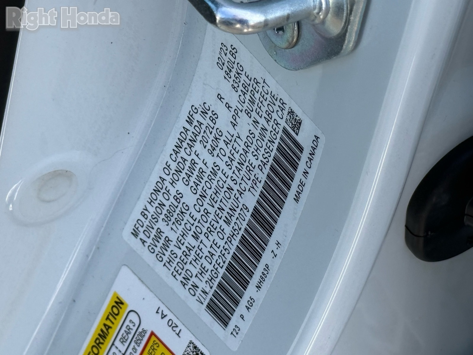 - VIN : 2HGFE2F57PH527079