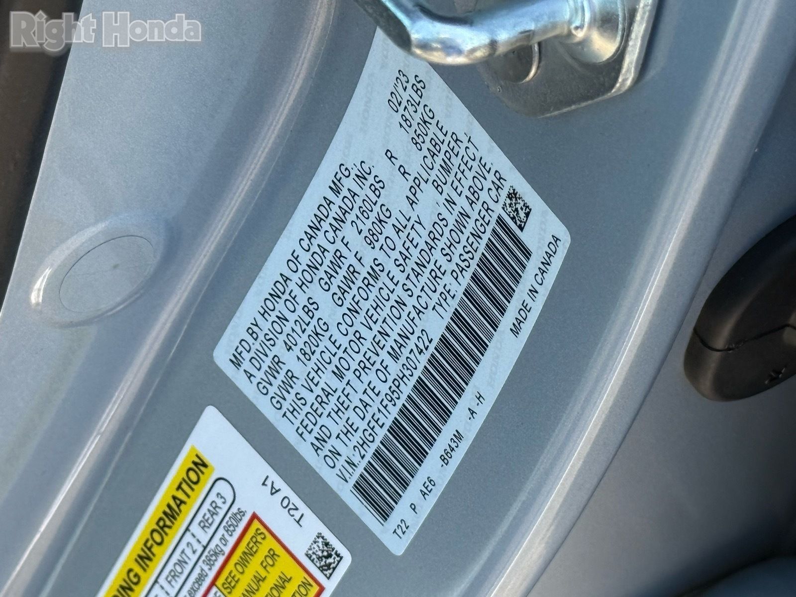 - VIN : 2HGFE1F95PH307422