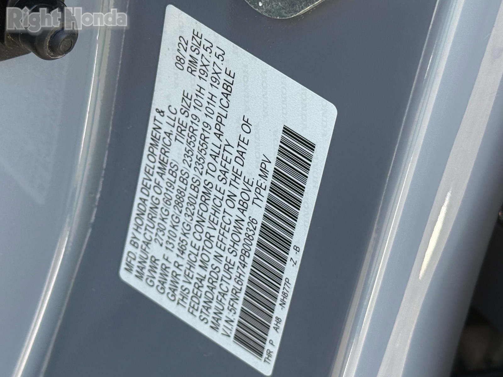 - VIN : 5FNRL6H74PB008326