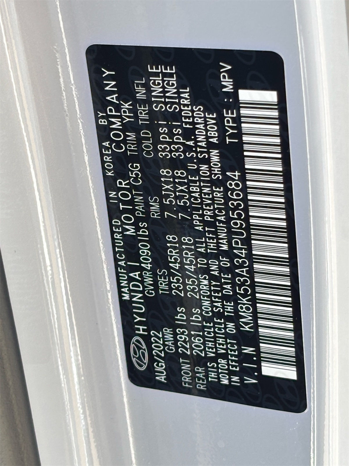- VIN : KM8K53A34PU953684