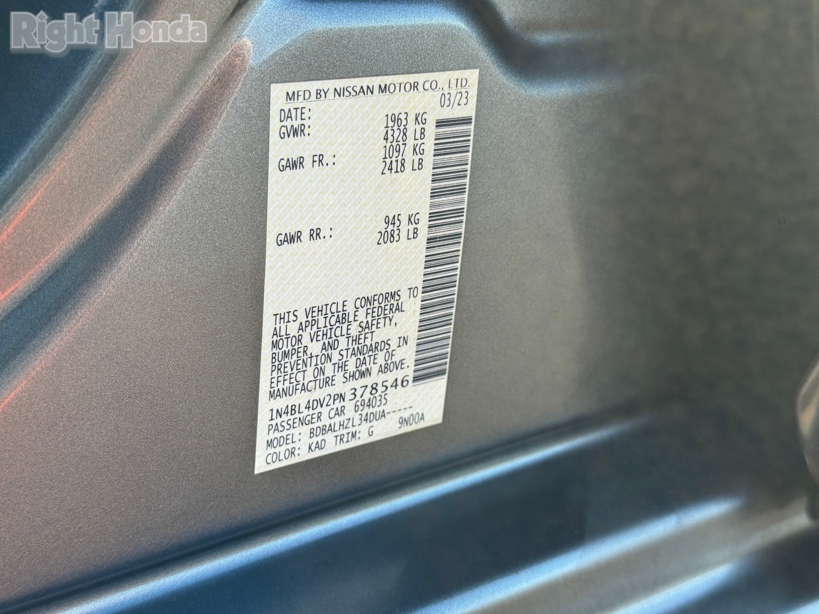 - VIN : 1N4BL4DV2PN378546