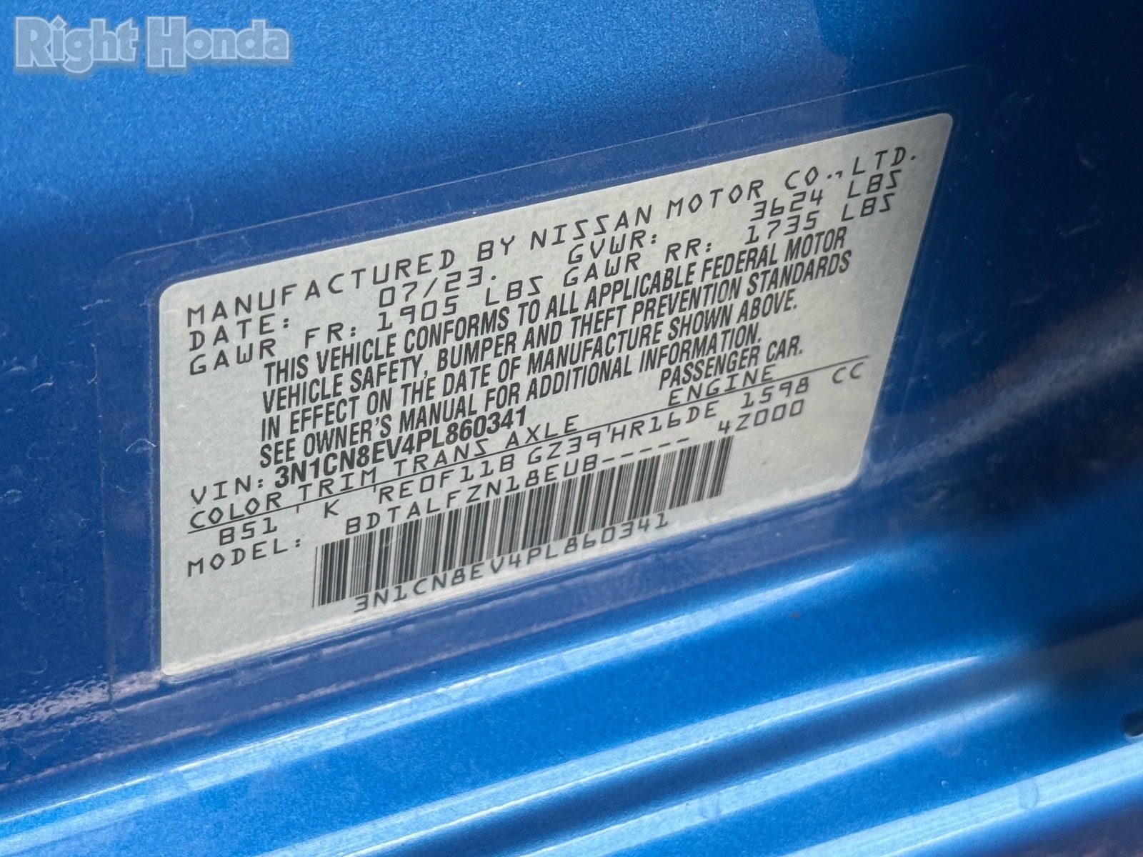 - VIN : 3N1CN8EV4PL860341