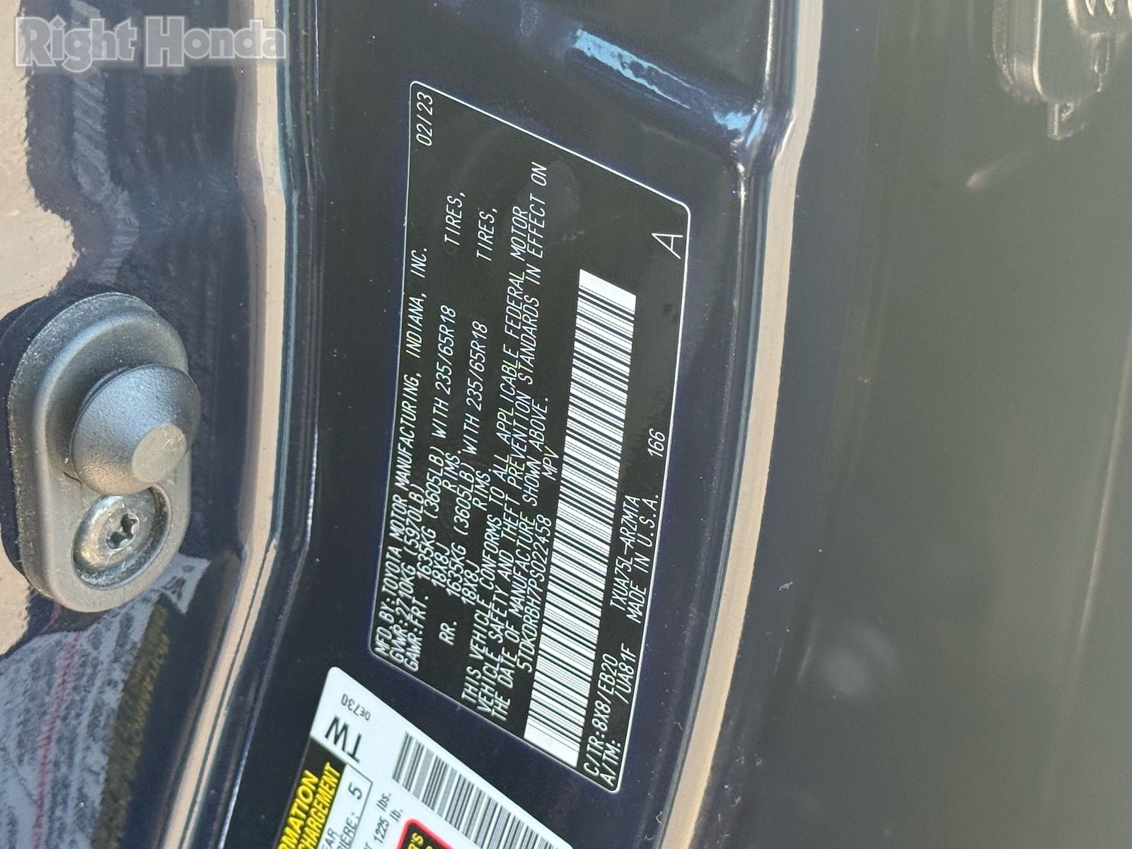 - VIN : 5TDKDRBH7PS022458